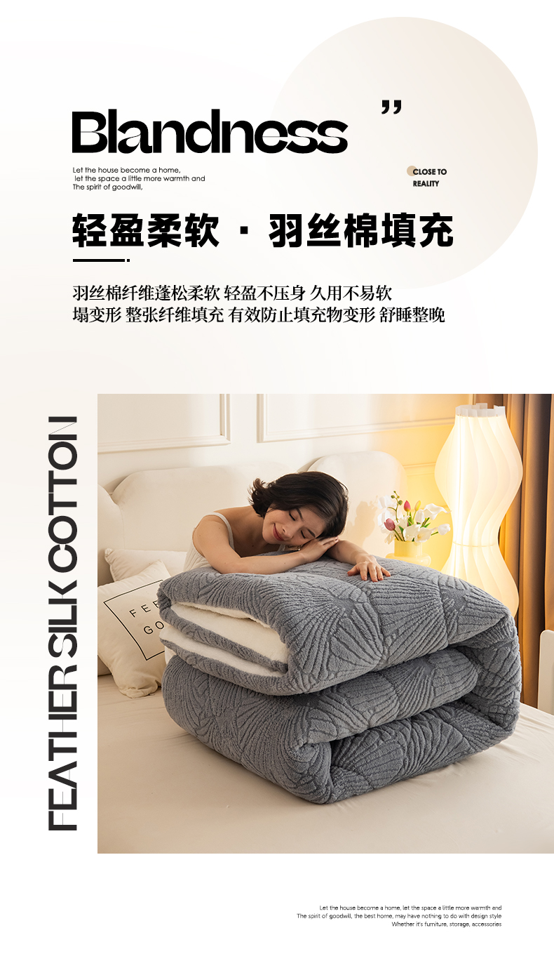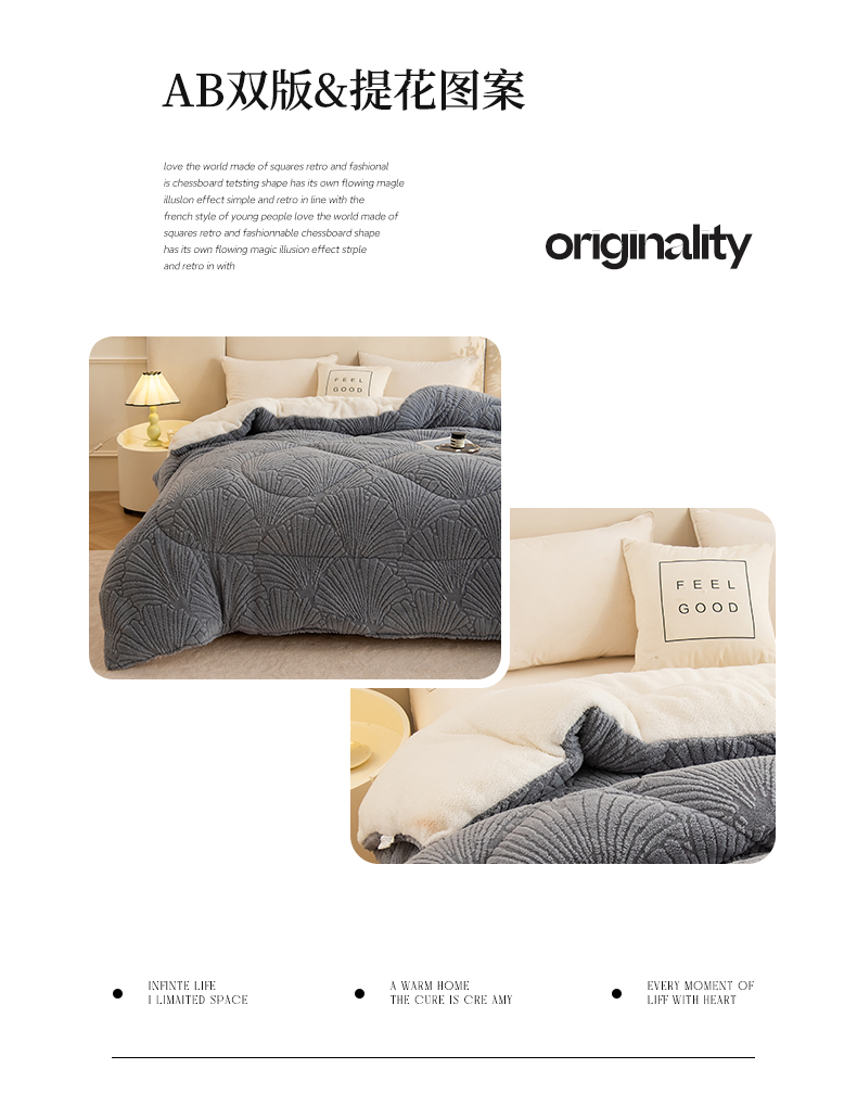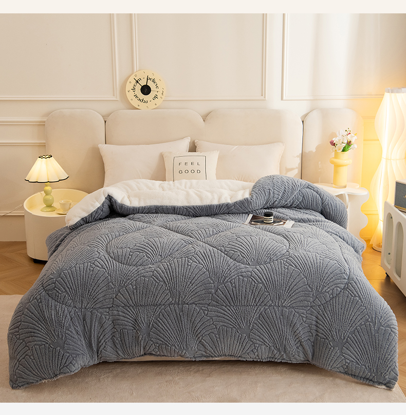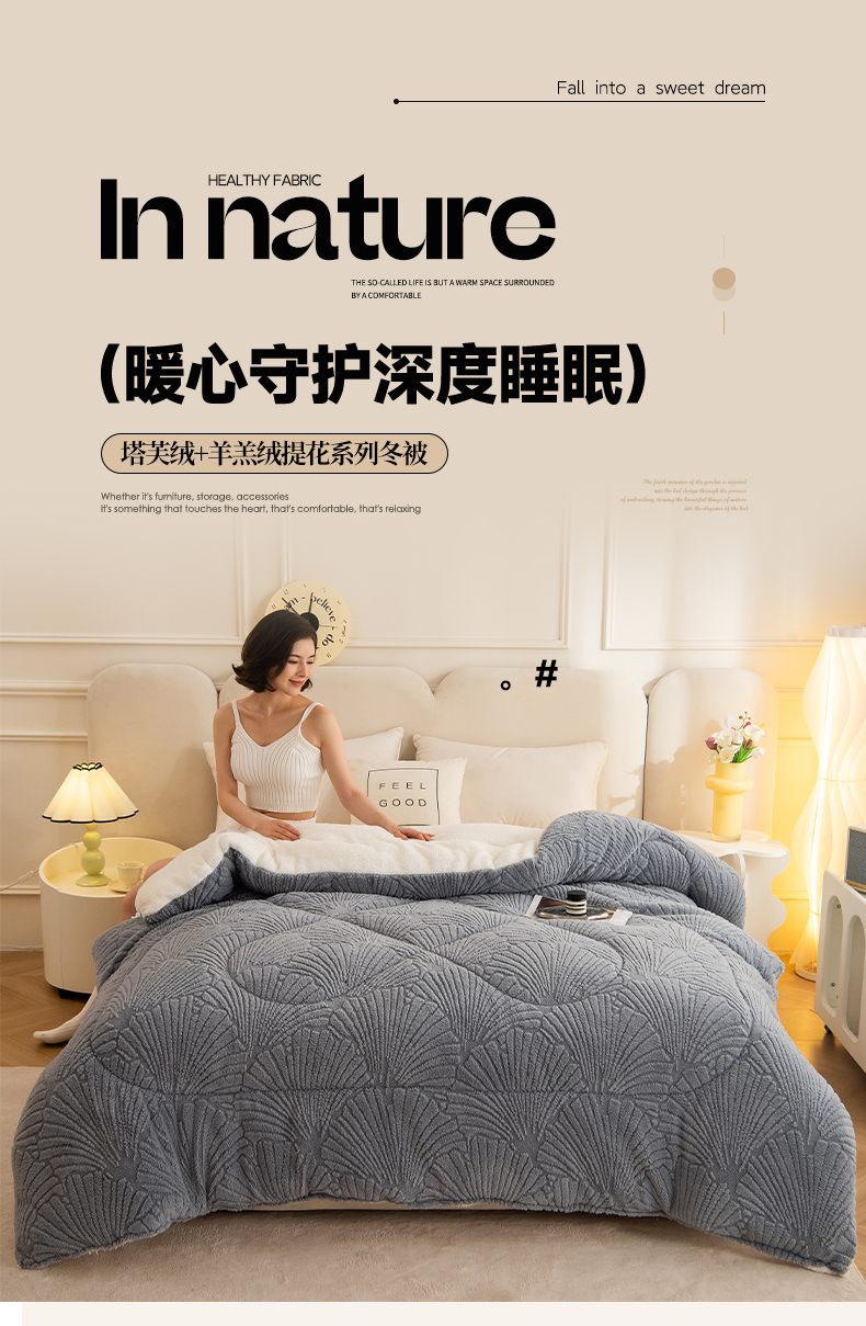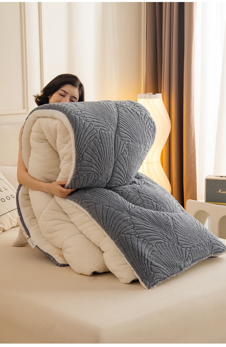 商品名称:畅销被业 2025新款跨境外贸塔芙绒羊羔绒提花系列冬被子被芯 银杏叶浅灰