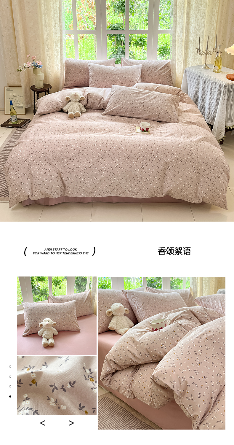 当前位置: 91家纺网 > 商品网购 > 床品套件 > 四件套 > 全棉普通四件套 > 柠馨 2025秋冬新款全棉印花四件套 香颂絮语