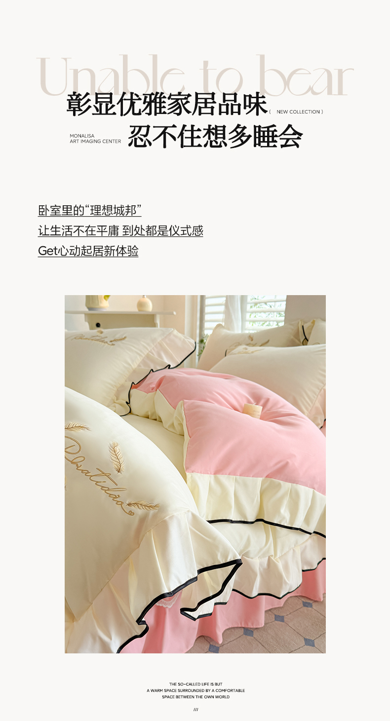 (总)柔享家(原芷澜家纺) 2025秋冬新款云感皱皱双层纱全棉镂空花边四件套,草莓小兔,春日兔语,泡芙小象,倾心,素瑾,甜梦狗狗,夏日,织梦