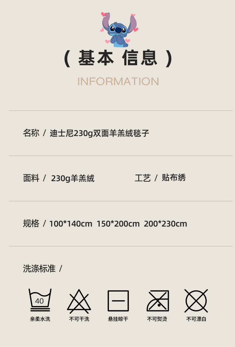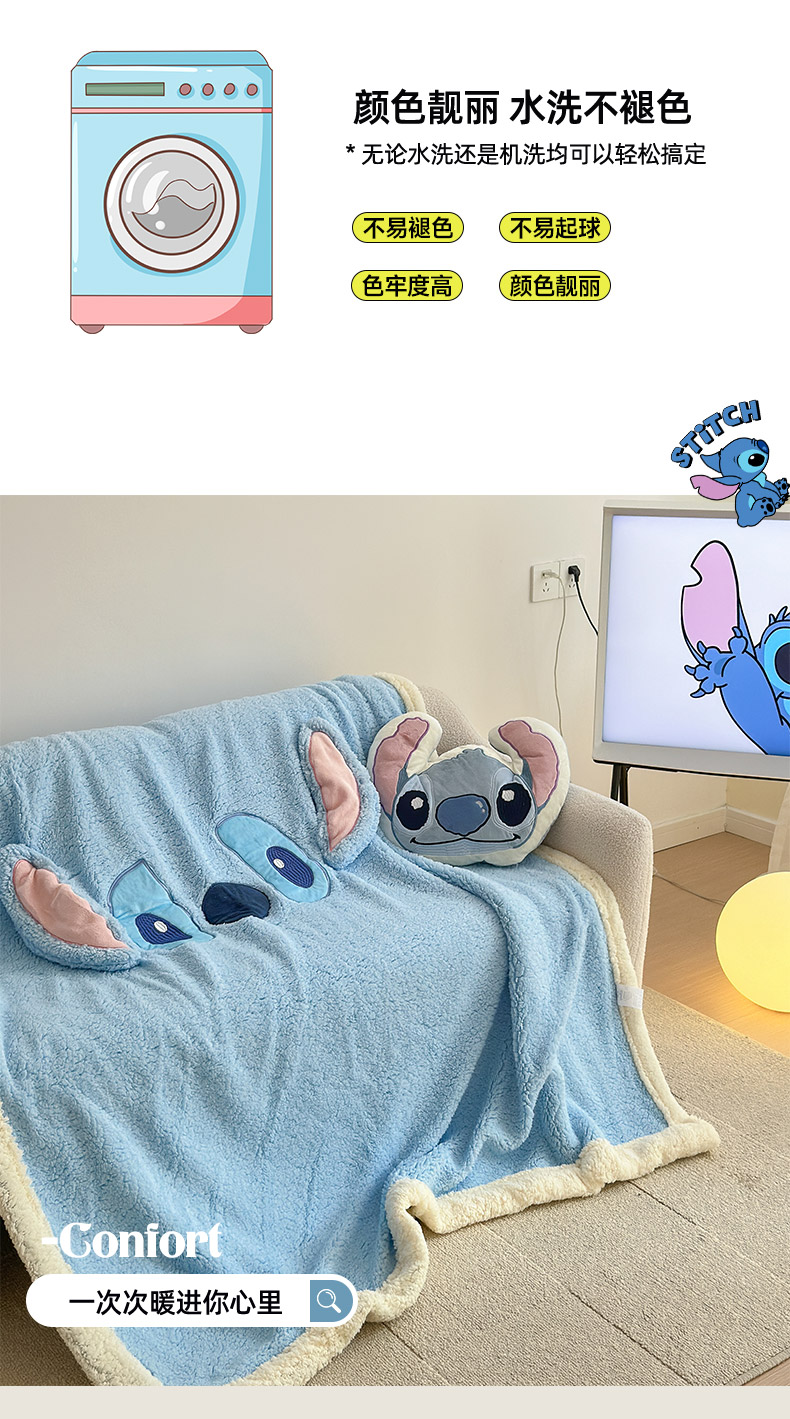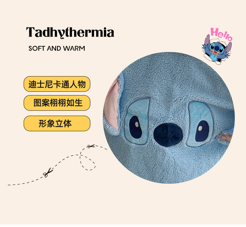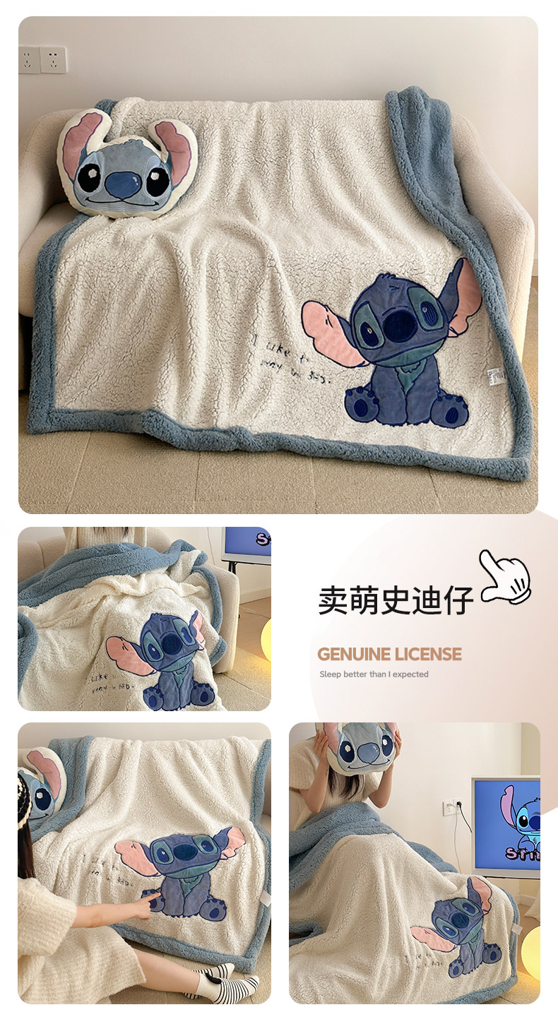 商品名称:小叮当家纺仓储工厂店 2025新款A类母婴级迪士尼毛毯牛奶绒毯珊瑚绒毛毯沙发毯盖毯雪花绒毛毯午睡毯子 贴布绣-史迪仔