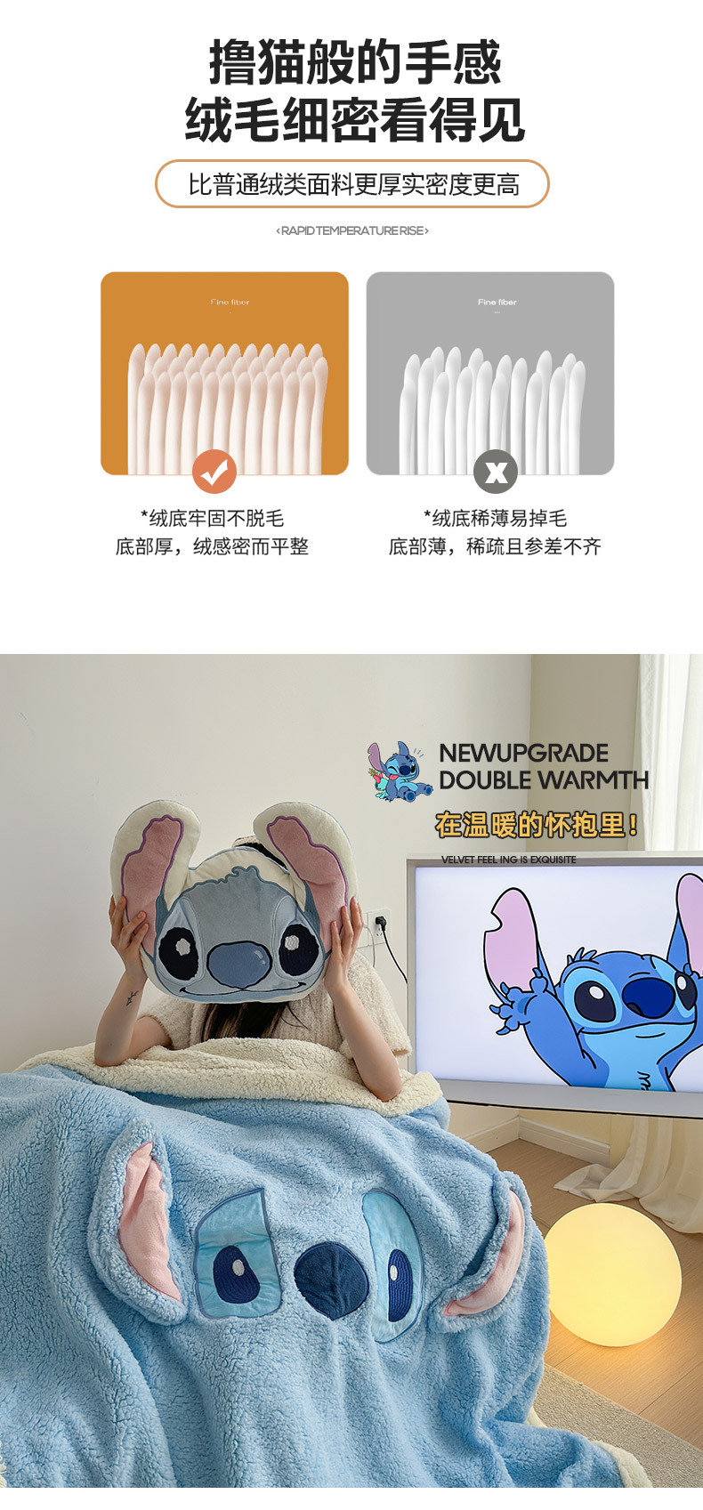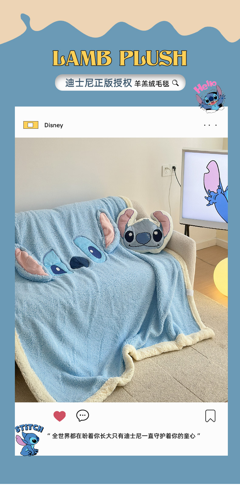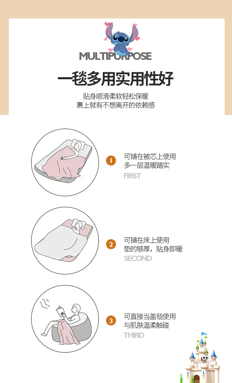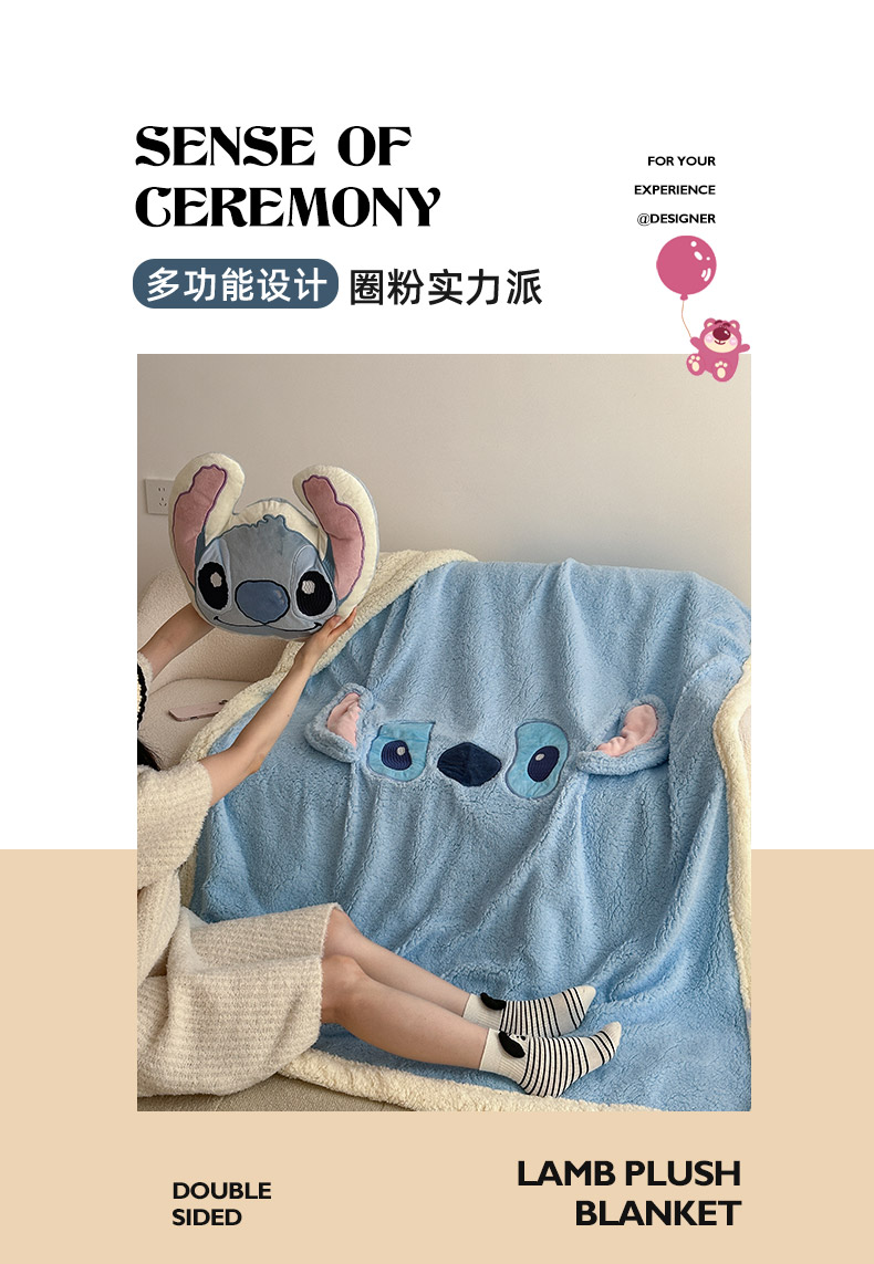 商品名称:小叮当家纺仓储工厂店 2025新款A类母婴级迪士尼毛毯牛奶绒毯珊瑚绒毛毯沙发毯盖毯雪花绒毛毯午睡毯子 贴布绣-史迪仔