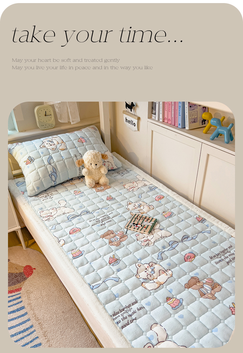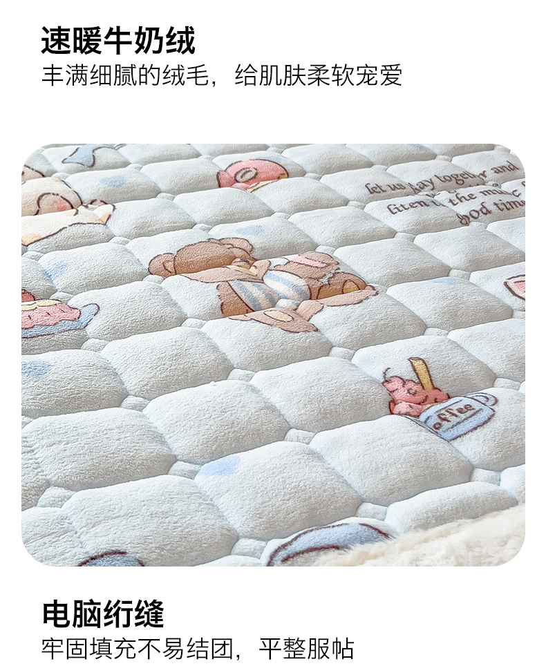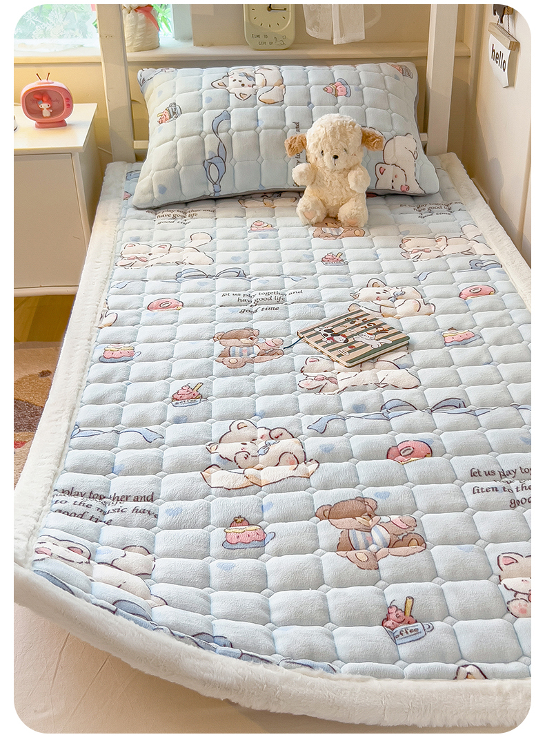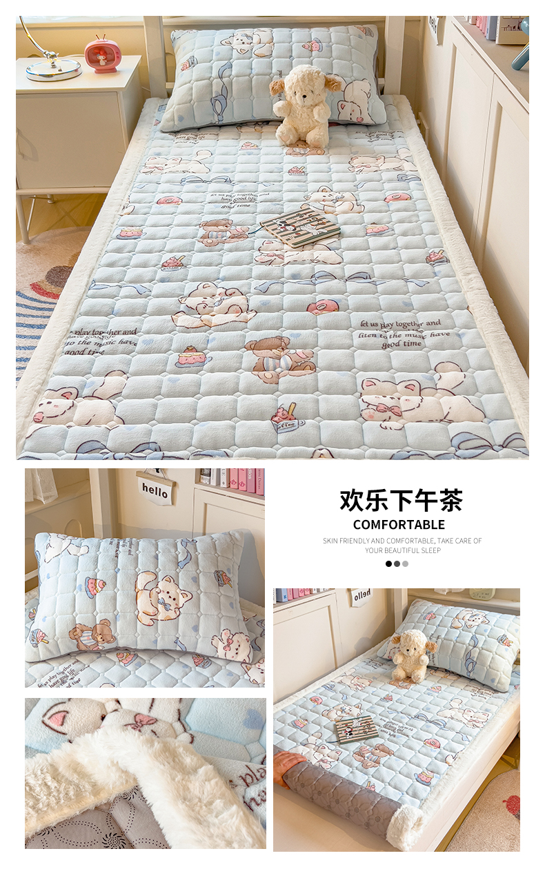 丝幔家纺 2025新款牛奶绒印花床护垫学生款 欢乐下午茶