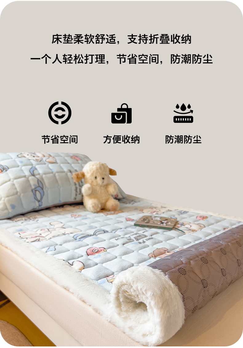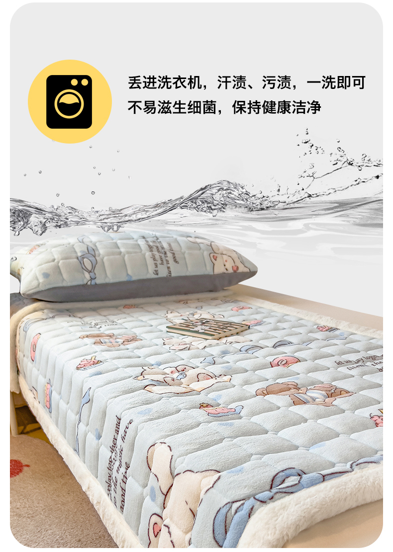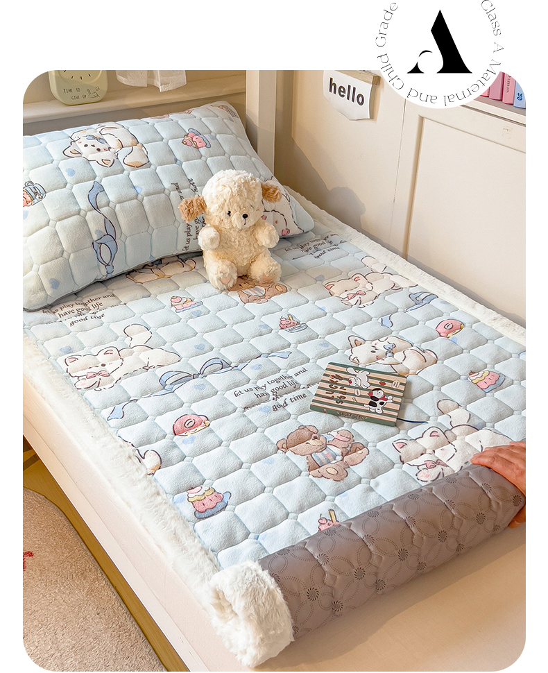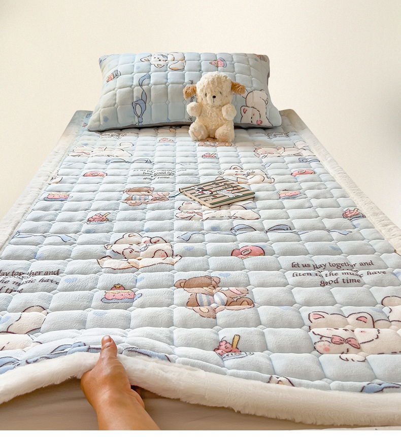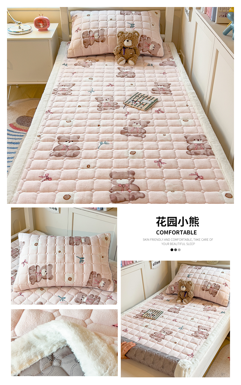 丝幔家纺 2025新款牛奶绒印花床护垫学生款 欢乐下午茶