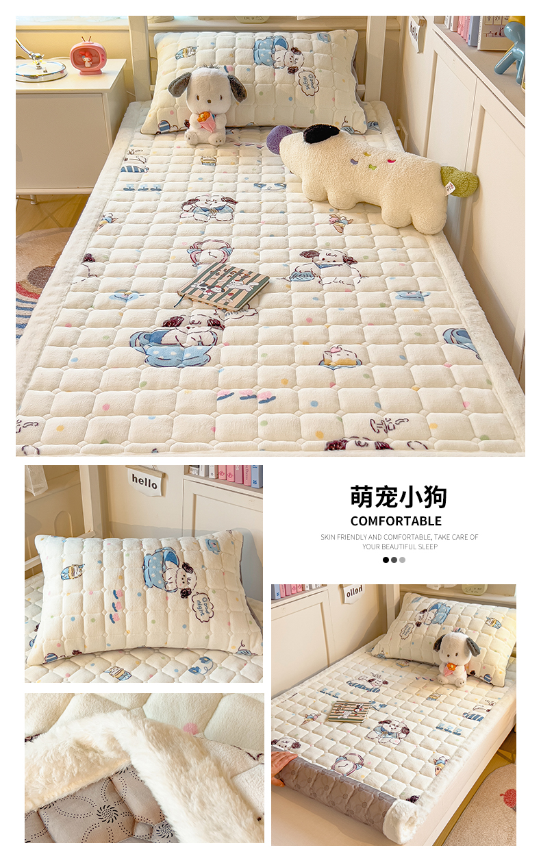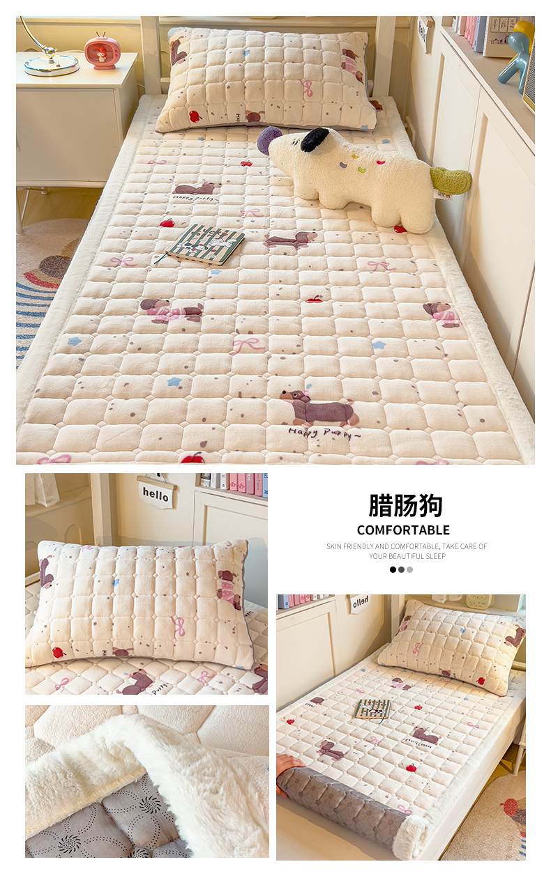(总)丝幔家纺 2025新款牛奶绒印花床护垫学生款,大白兔紫,芭比蝴蝶结,大橘大利,花园小熊,欢乐下午茶,腊肠狗,萌宠小狗,秘密花园,趣多多,甜心粉猫