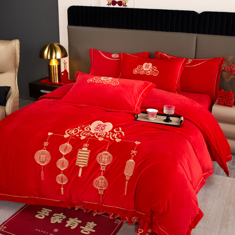 青竹苑 2025新款婴儿绒刺绣婚庆四件套 张灯结彩