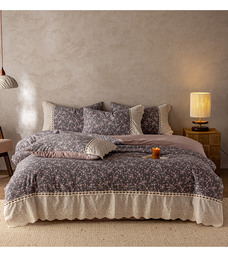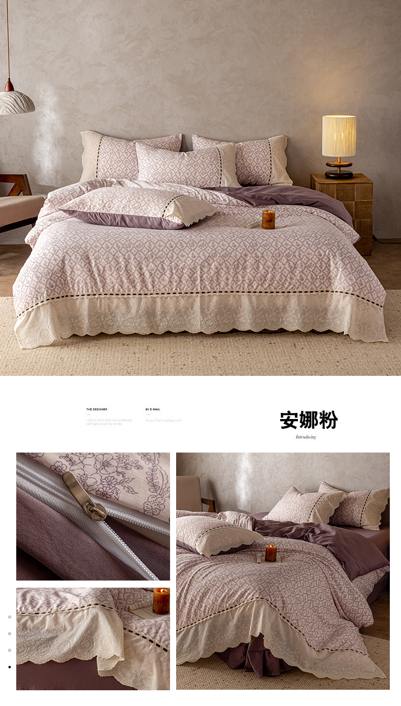 商品名称:芯贝儿 2025新款加厚全m花边双层纱水洗m四件套 竹韵