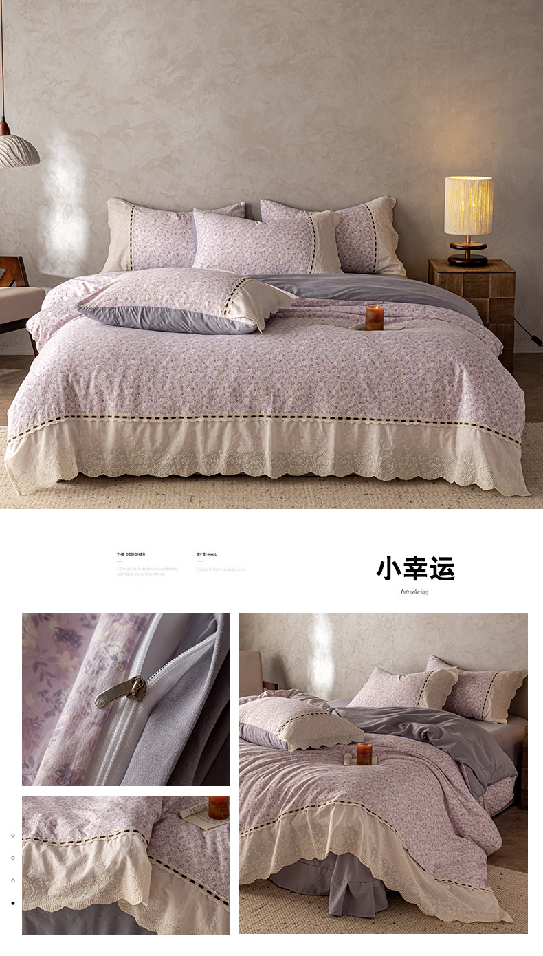(总)芯贝儿 2026新款古法小清新全棉花边仿棉水洗棉法式四件套件被套床单,陌言,草莓熊,浪漫樱桃,卡吉米,班尼狗,花絮,花田故事,半糖悠然,漫步花从,午后花园,夏日初恋,小伙伴,小木马,星宝,郁金香,云瑶,KT猫