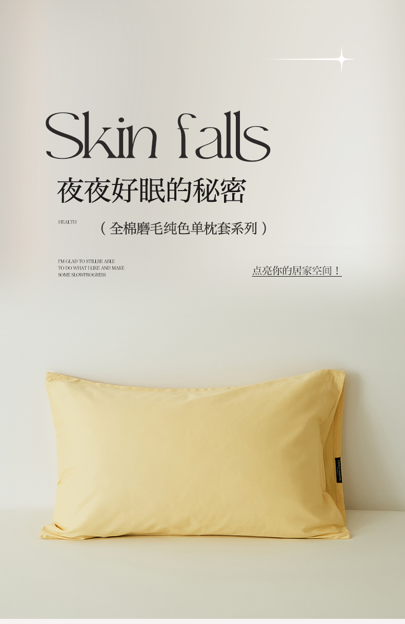 商品名称:EH家居 2025新款全棉磨毛纯色单枕套-云栖系列 云栖-樱黄