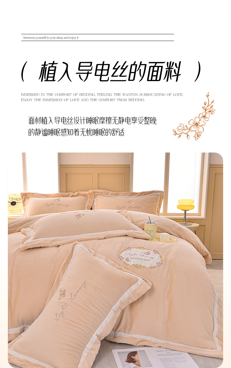 (总)柔享家(原芷澜家纺) 2025新款A类高克重全消光水貂绒刺绣四件套系列-居里夫人,居里夫人-豆沙粉,居里夫人-天空蓝,居里夫人-雾灰色,居里夫人-雾棕色,居里夫人-卡其色,居里夫人-香芋紫