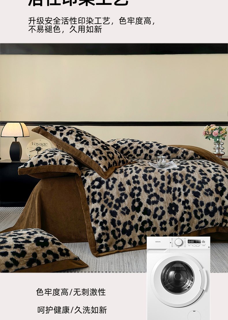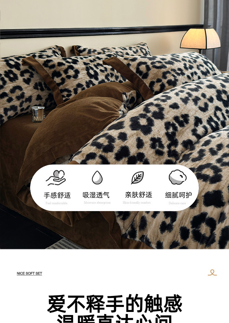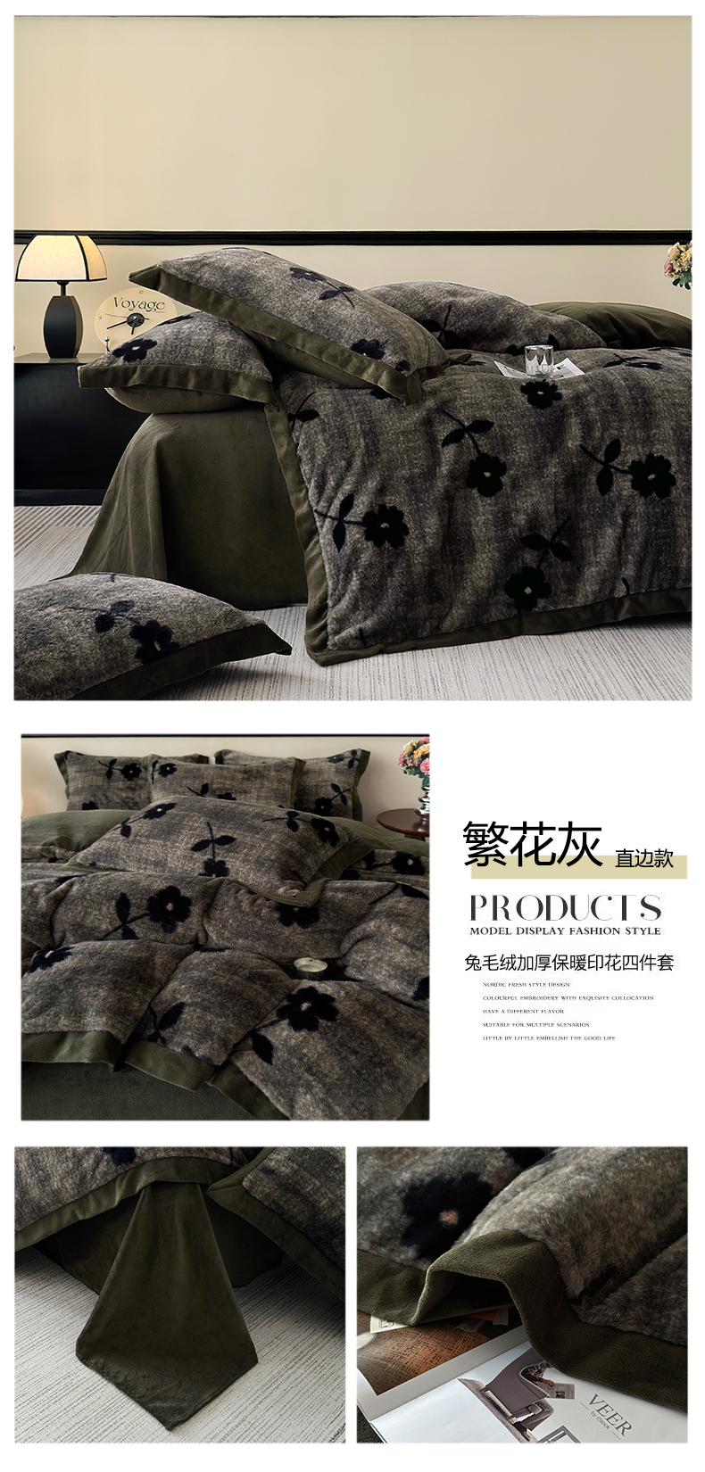 商品名称:金艾草 2025新款轻奢獭兔毛美拉德风印花拼角床单款四件套 盛放灰