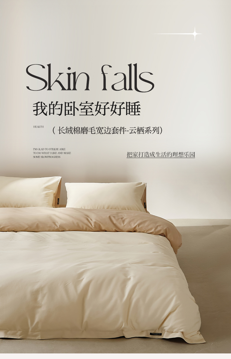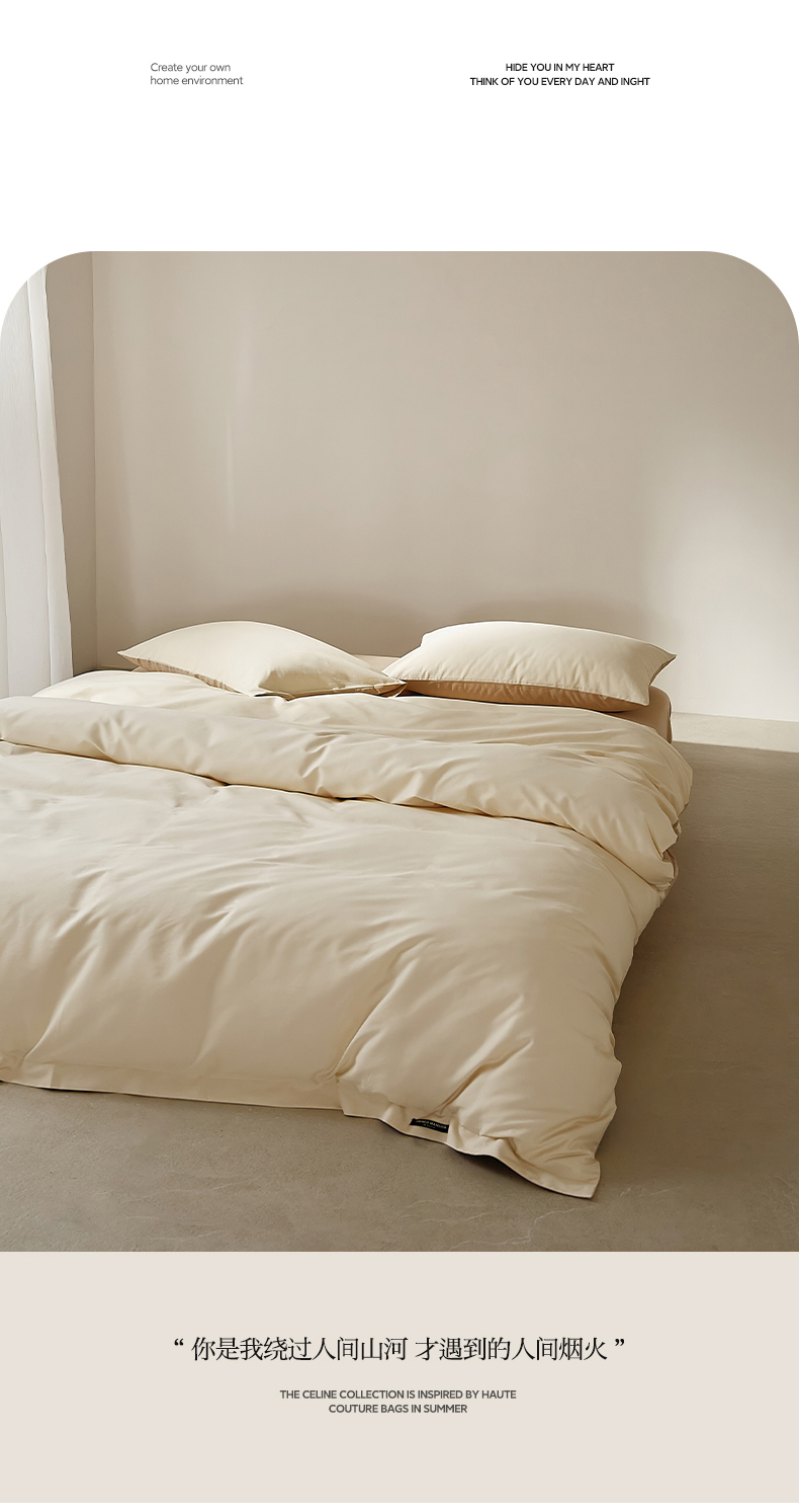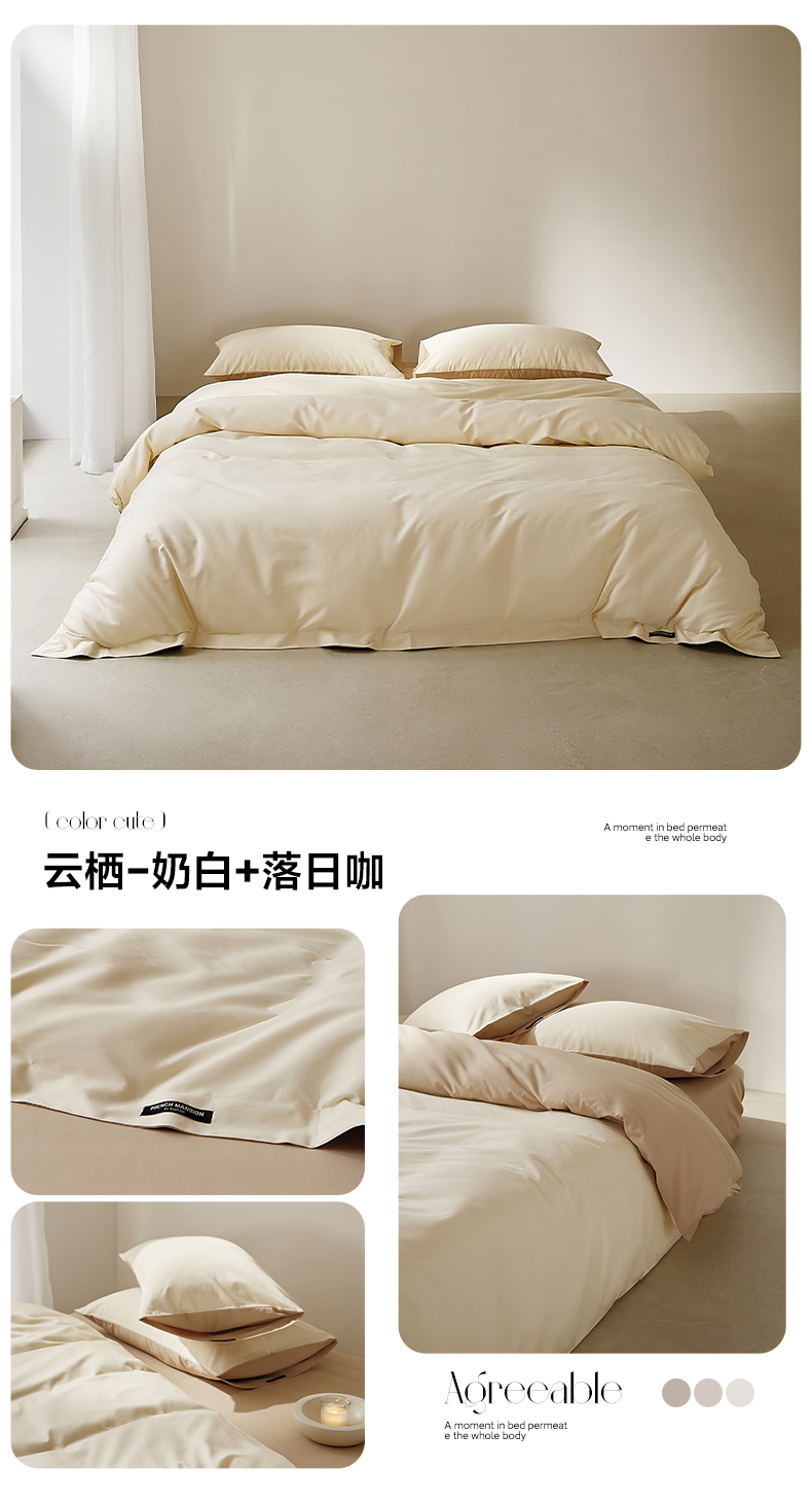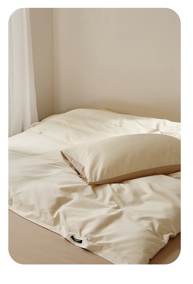 当前位置: 91家纺网 > 商品网购 > 床品套件 > 四件套 > 全棉活性四件套 > EH家居 2025新款100S长绒棉小宽边磨毛四件套--云栖系列 奶白+落日咖