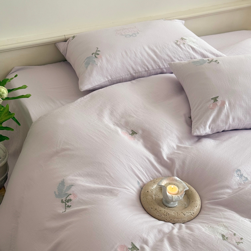 当前位置: 91家纺网 > 商品网购 > 床品套件 > 四件套 > 全棉普通四件套 > 鹿班家居 2025年秋冬款全棉纯棉皱皱纱精密刺绣四件套-晴野小记系列(标准会员-20元) 晴野小记-紫色