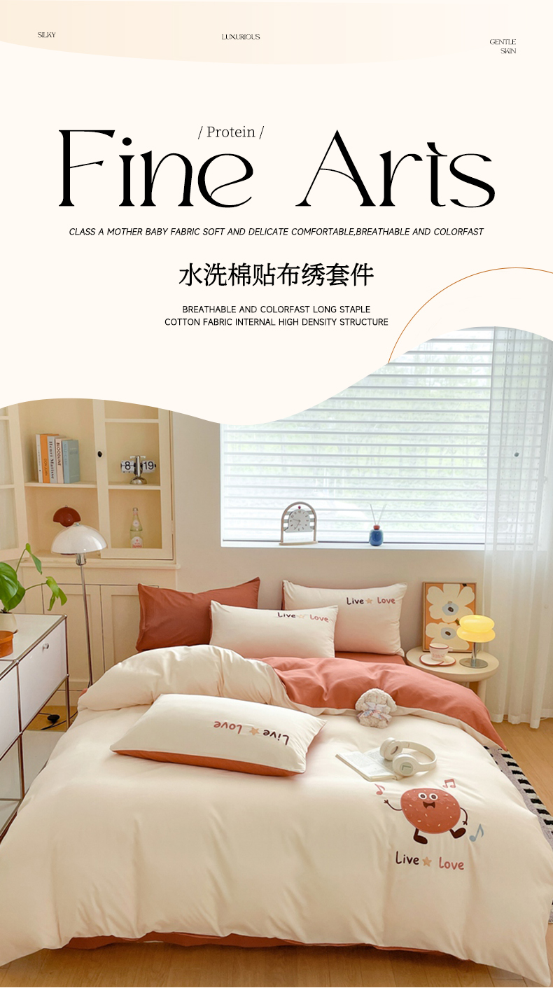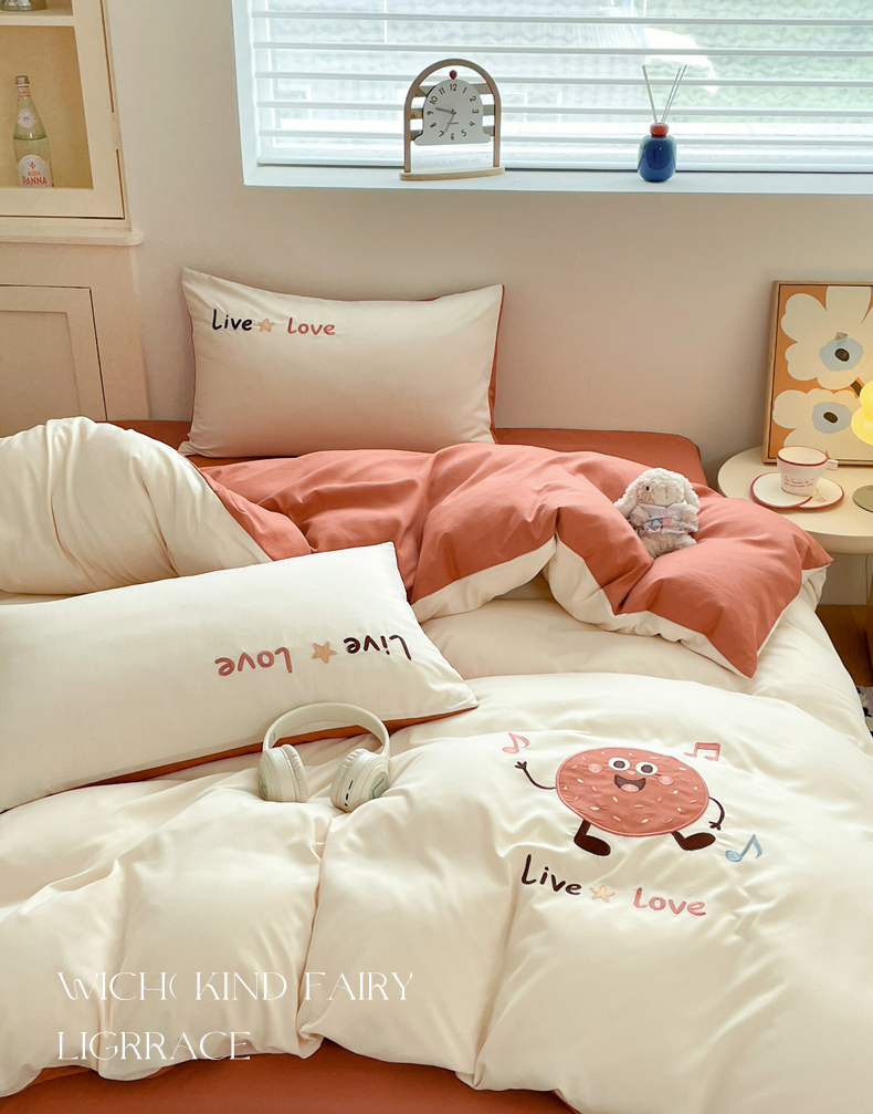 当前位置: 91家纺网 > 商品网购 > 床品套件 > 四件套 > 水洗棉四件套 > 麦空家居 2025新款抗菌水洗皱棉贴布绣四件套学生三件套-糖果梦 趣多多-奶昔白