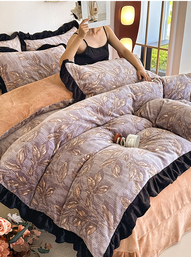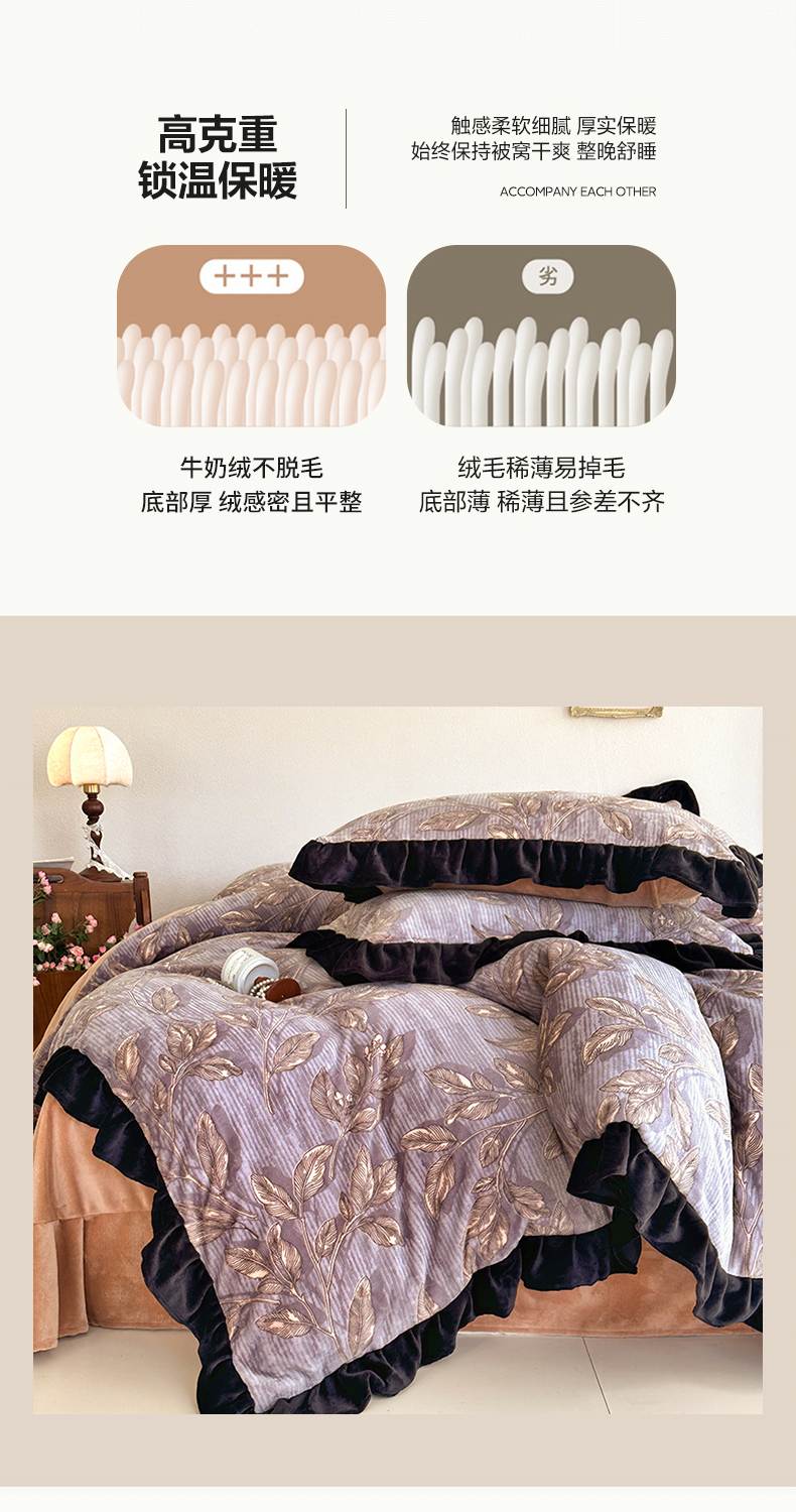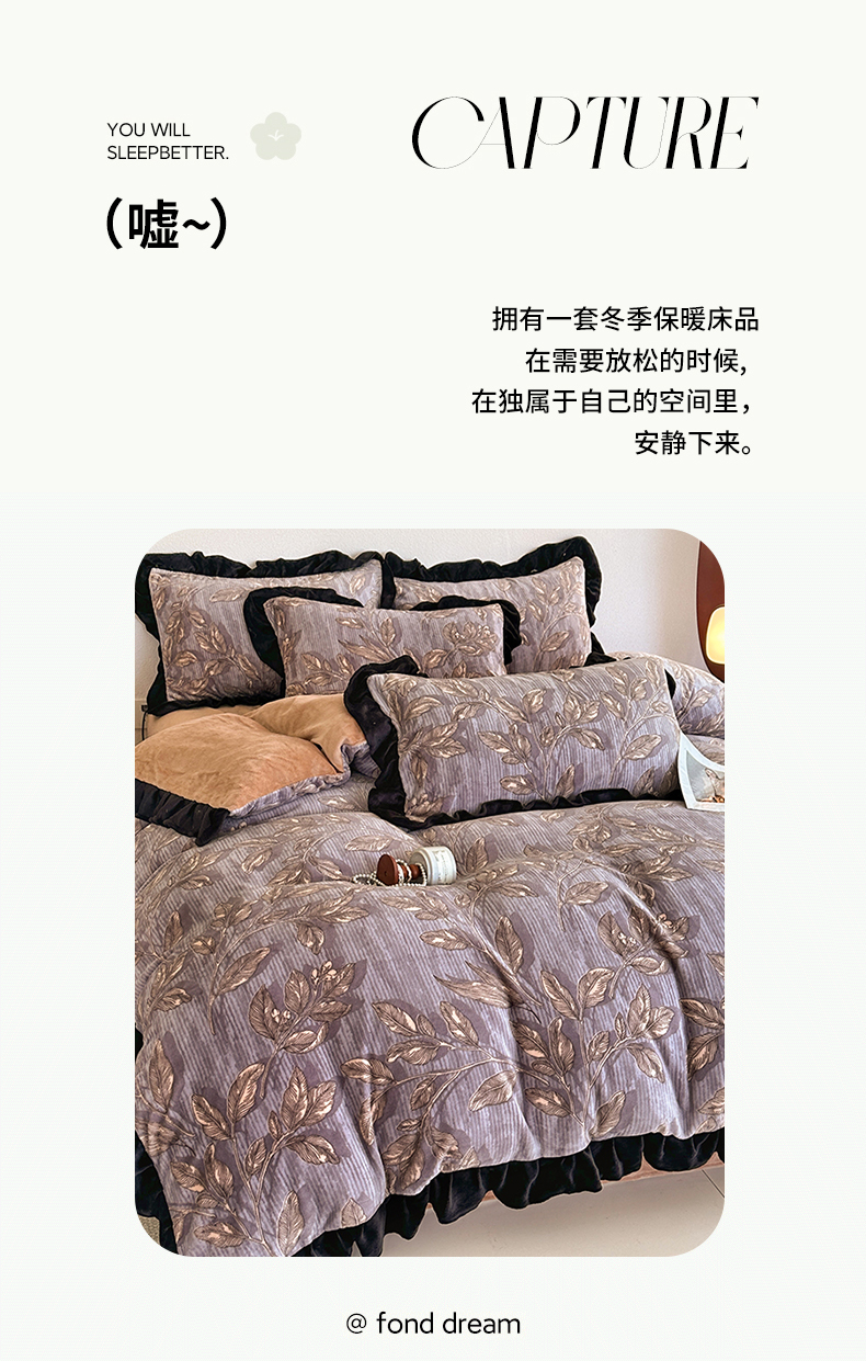 佳一 2025新款高克重8-9斤 印花牛奶绒四件套 花样情怀,花样情怀
