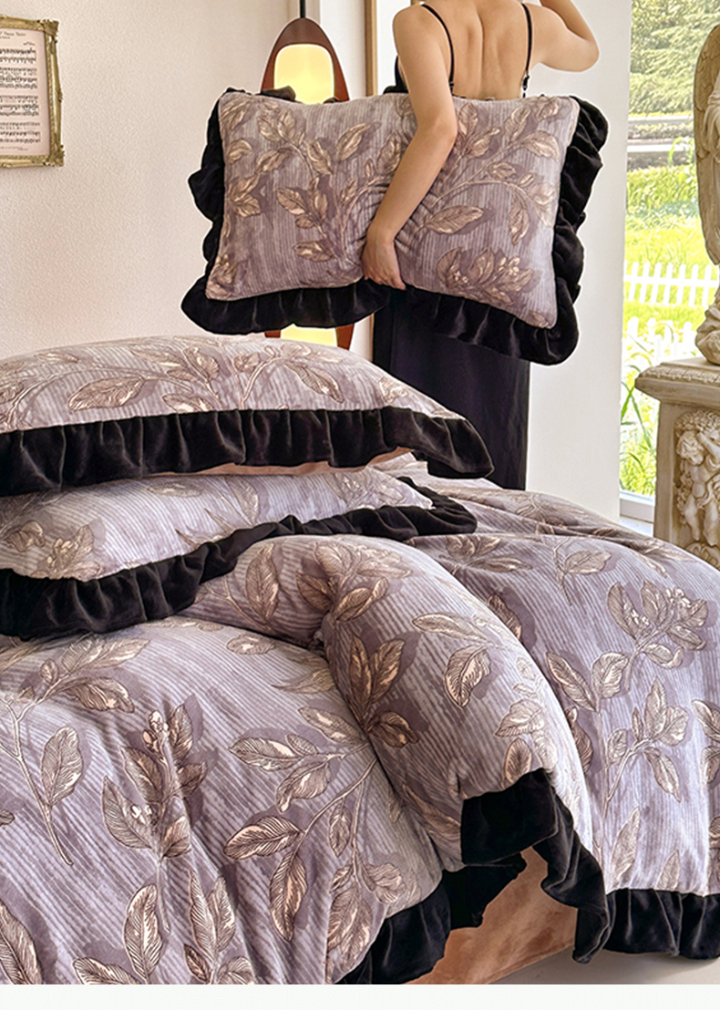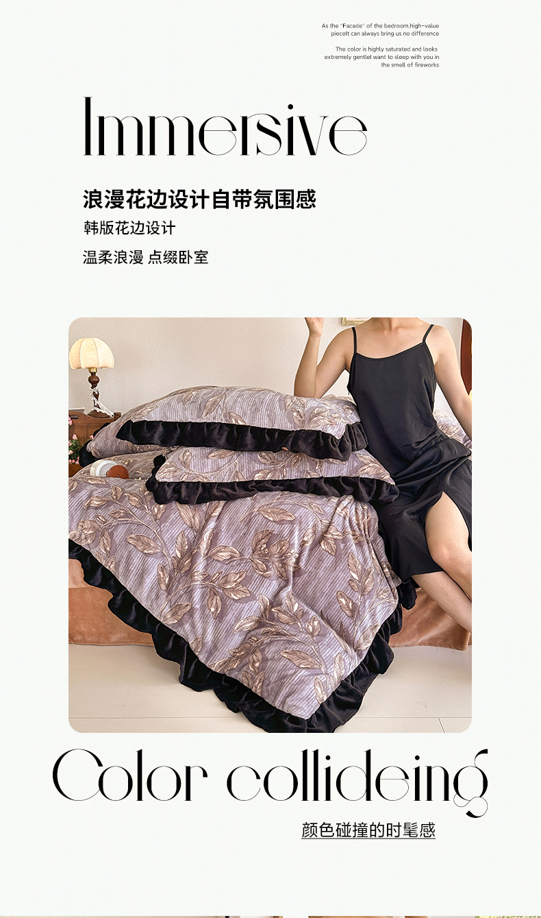 佳一 2025新款赫本风牛奶绒床裙款花边四件套 印象巴黎