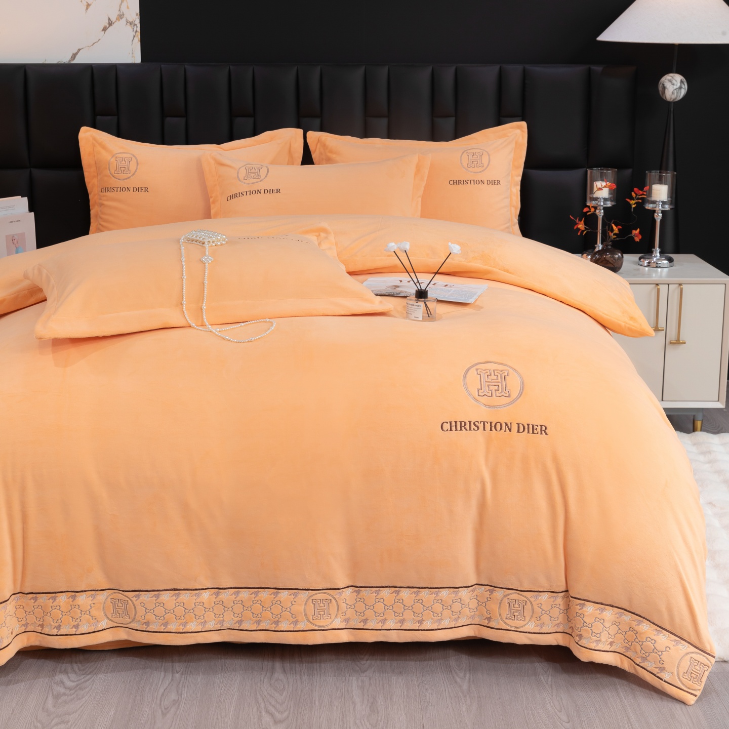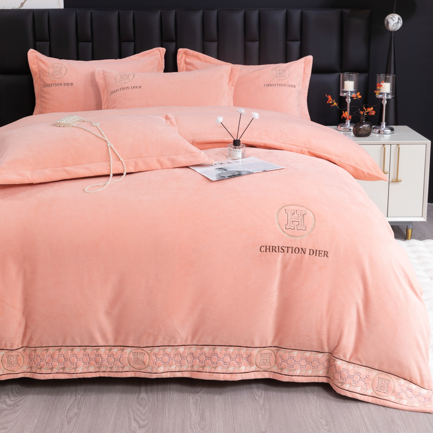 商品名称:优姿家纺 2025新款75D全光慕丝绒保暖四件套-摩登时代 摩登时代-豆沙