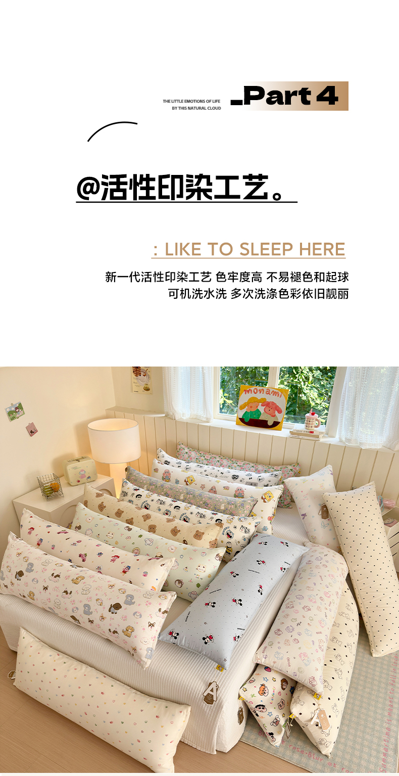 商品名称:罗亿家纺 2025新款ins韩国卡通水洗棉大抱枕长条靠枕靠垫(小红书同款) 彩色爱心