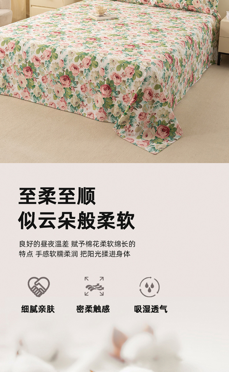 商品名称:锦鹭被业 2025新款复古全棉纯棉单床单单品床单床单单件 花海