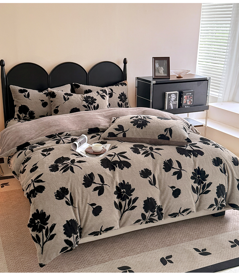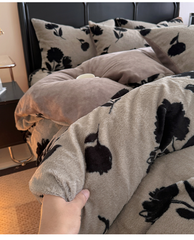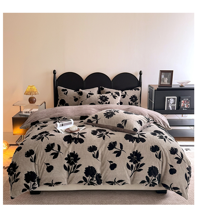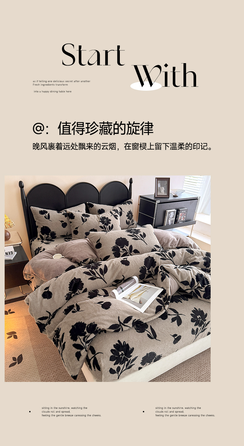 商品名称:慕梵家居 2025新款亲肤舒适兔绒床笠款四件套 暗夜花颂