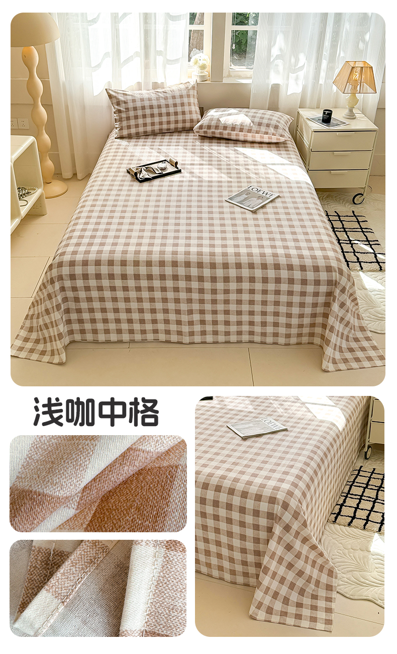 丽美人家纺 2025新款全棉纯棉磨毛单床单 床单单件 迷你粉格