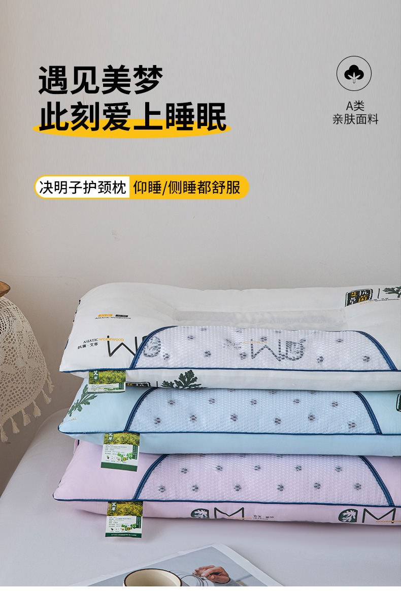 商品名称:卓昌枕芯 2025新款艾草抗菌决明子磁石定型枕护颈枕枕头枕芯 蓝色