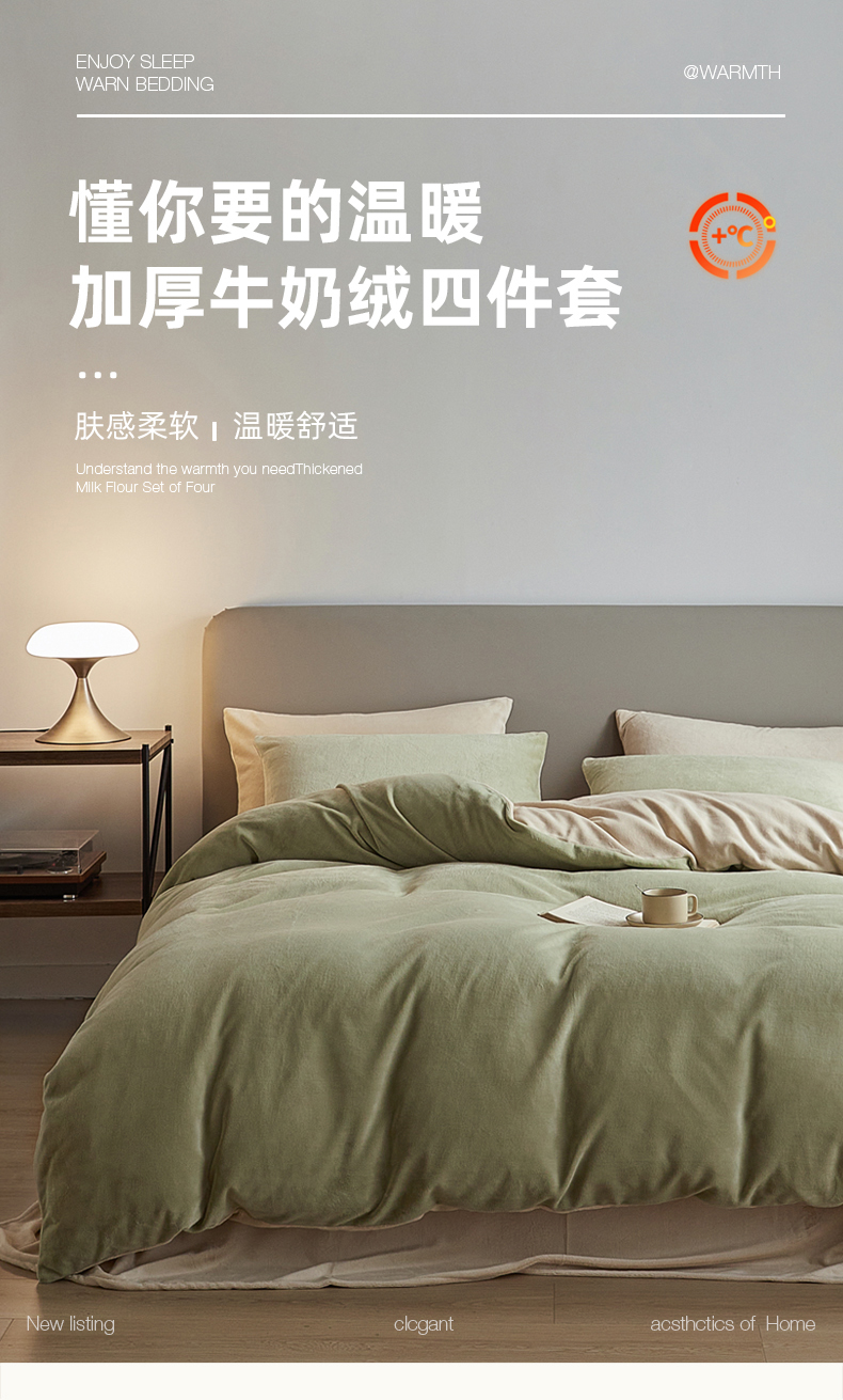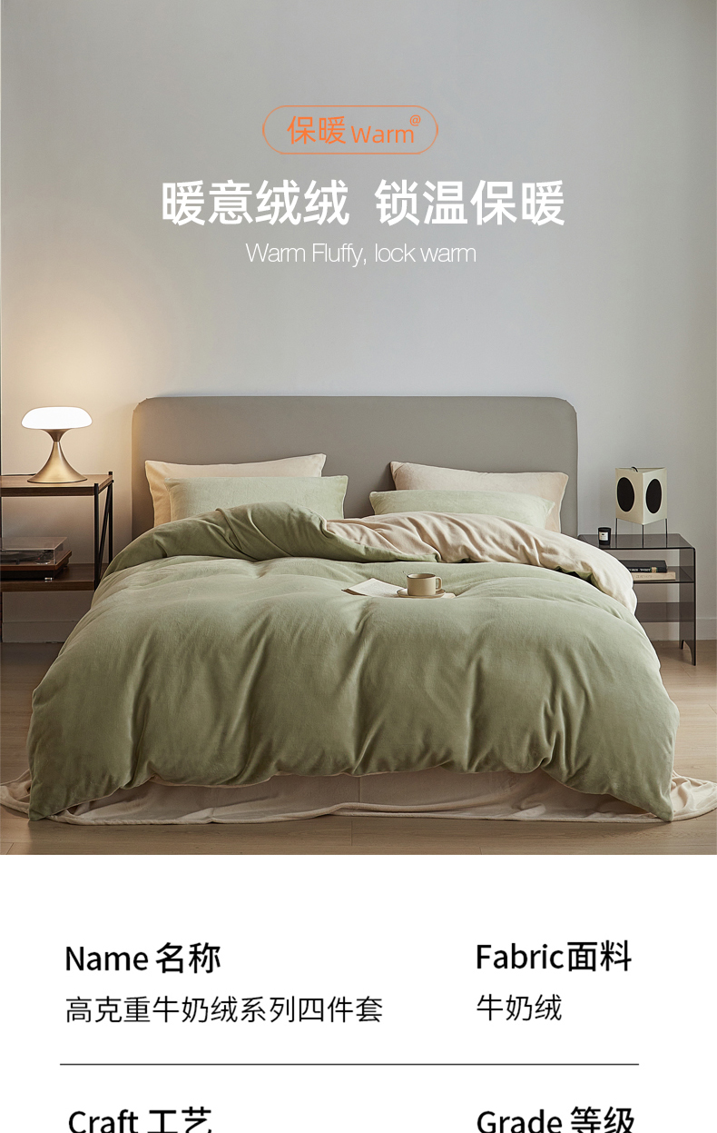 当前位置: 91家纺网 > 商品网购 > 床品套件 > 四件套 > 牛奶绒四件套 > 千朵森 2025新款高克重全消光纯色牛奶绒套件四件套 风格二 绿芙配郁香金