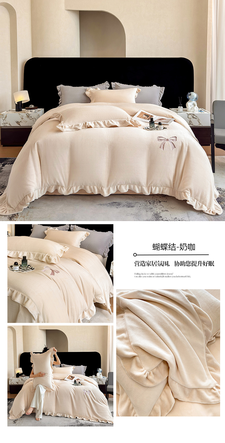 商品名称:席之家 2025新款蝴蝶结绣花牛奶绒四件套 蝴蝶结-奶咖