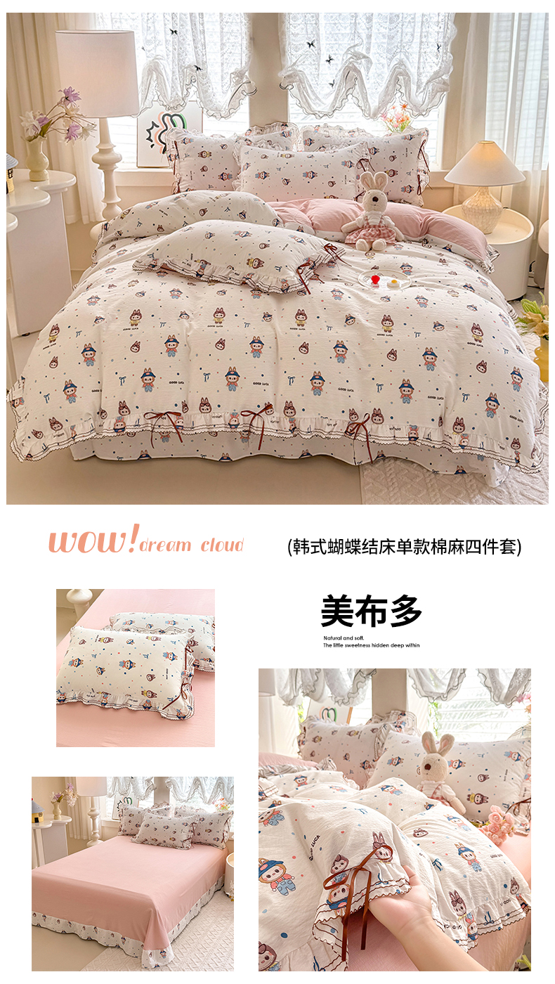 (总)韩约家纺 2026新款韩式双层花边古法棉感床盖四件套,安妮,豹纹女孩,彩心,繁花似锦,蝴蝶伙伴,萌萌兔,柔梦,甜心樱桃