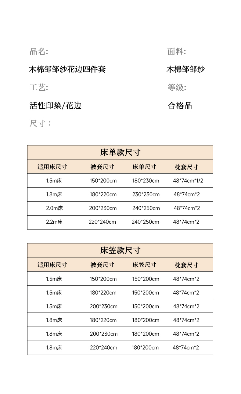1.5m床笠款四件套-被套180*220 | ¥65.00 |