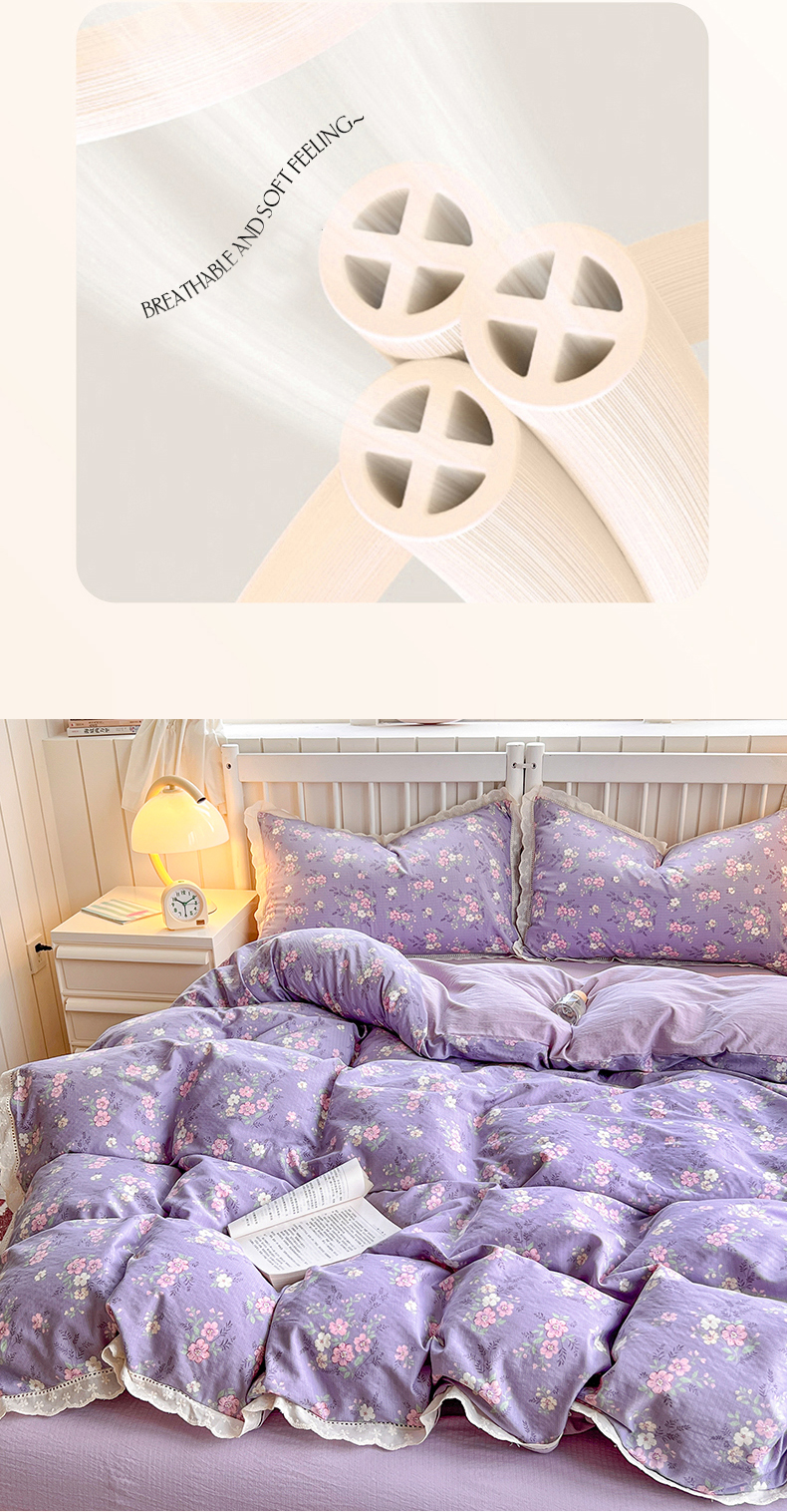 当前位置: 91家纺网 > 商品网购 > 床品套件 > 四件套 > 其它四件套 > 赫然家纺 2026新款云感皱皱双层纱法式镂空全棉花边款四件套 花海兔