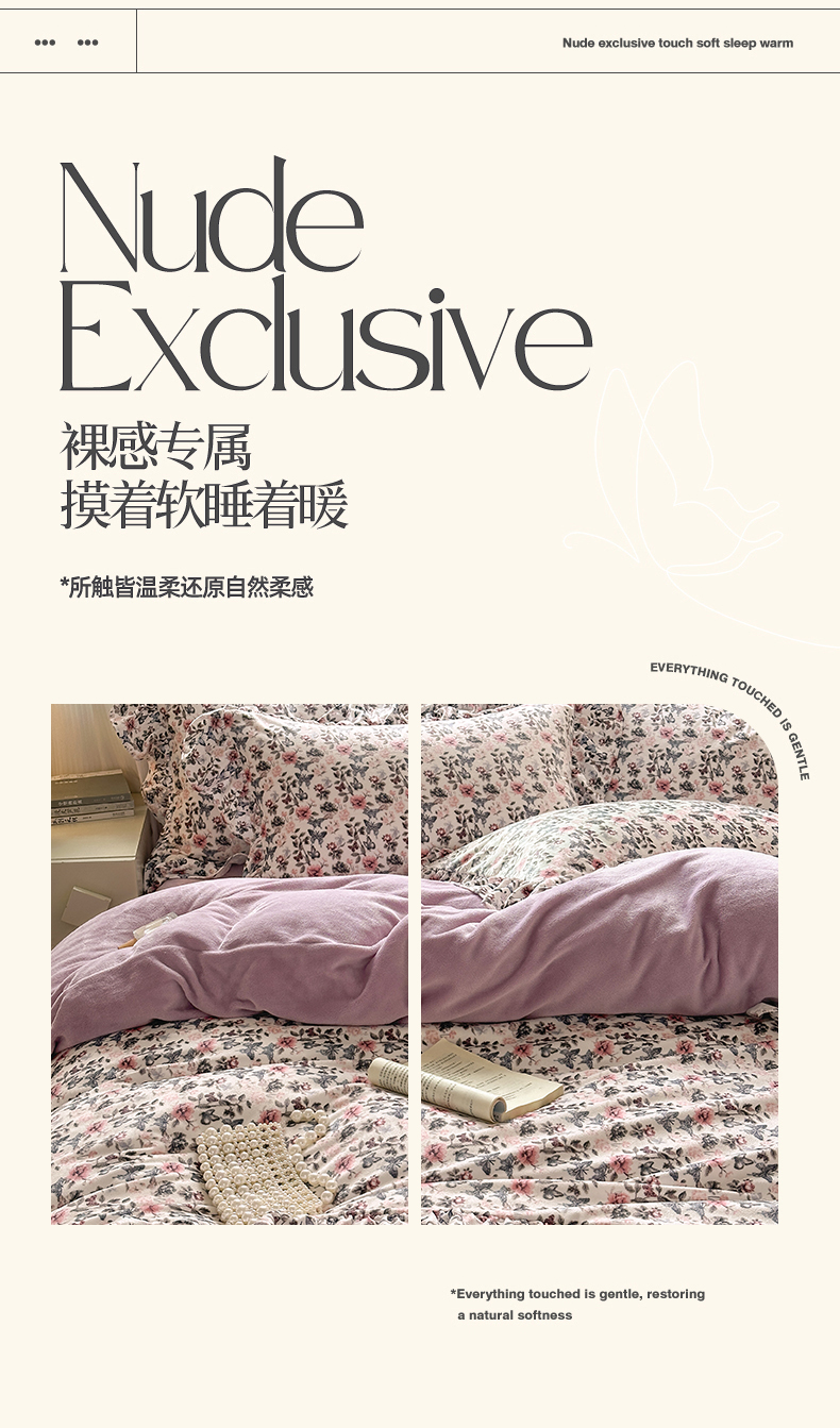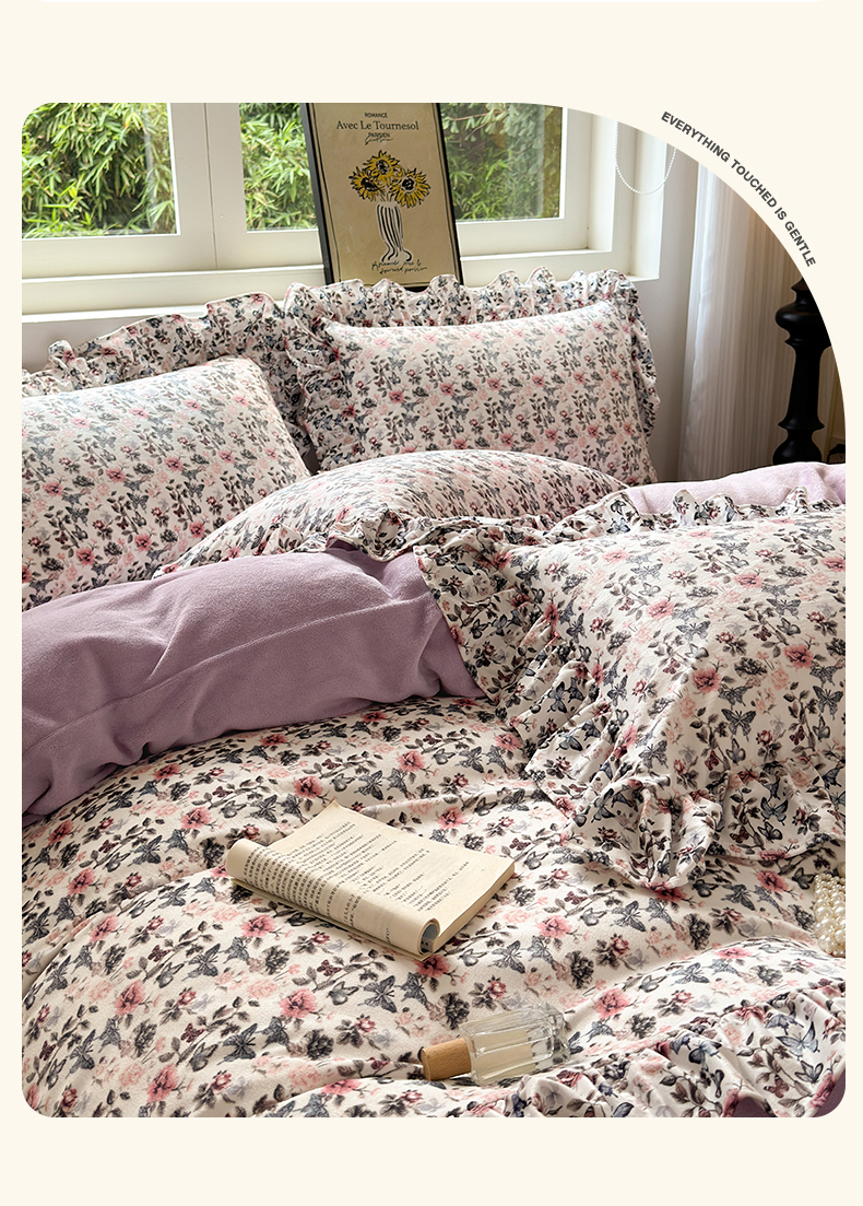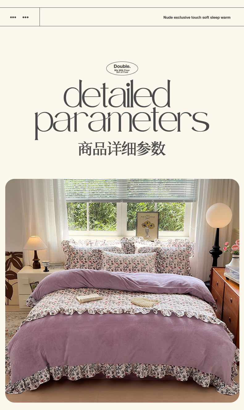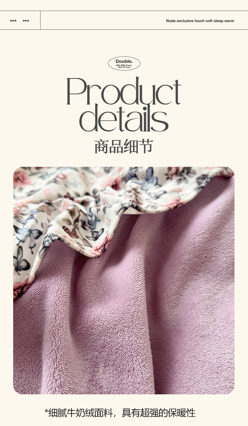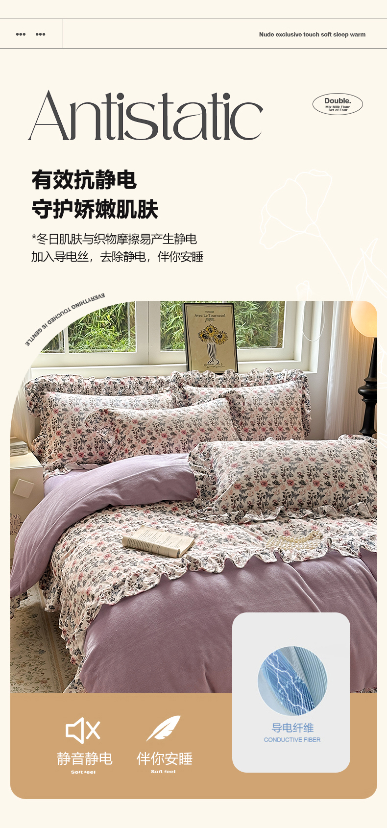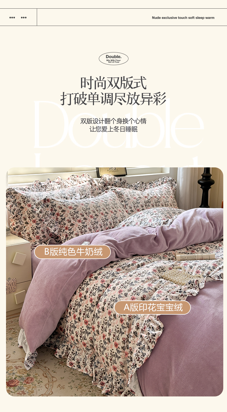 当前位置: 91家纺网 > 商品网购 > 床品套件 > 四件套 > 牛奶绒四件套 > 兰紫橙家纺 2025新款印花蝴蝶花边款牛奶绒四件套 花边款-罗兰紫