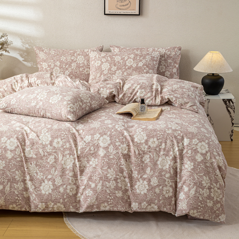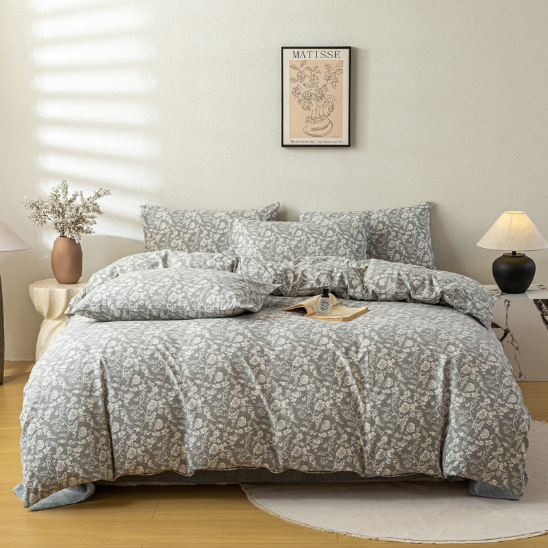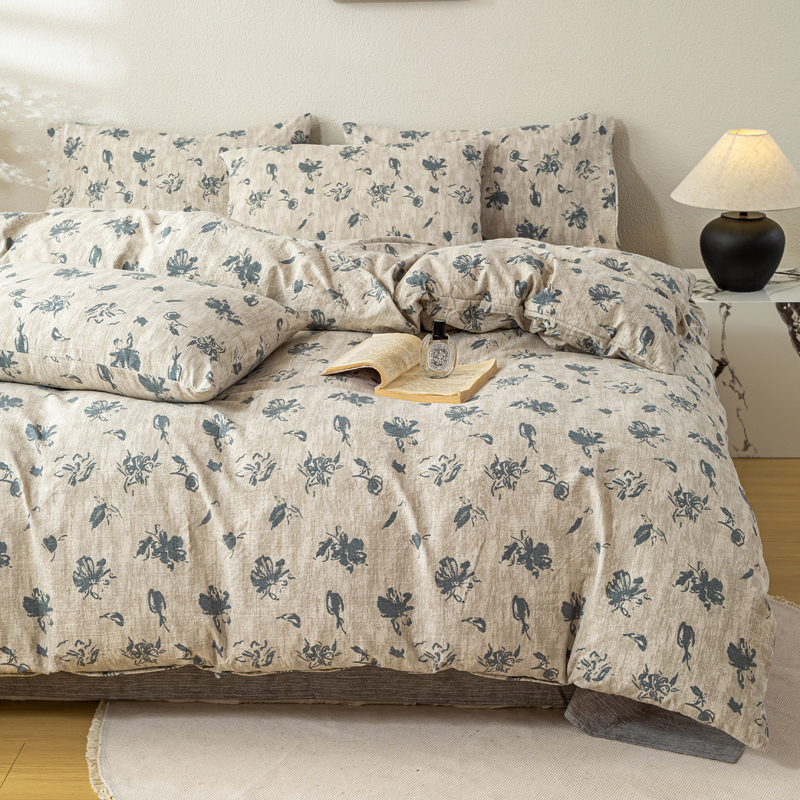 七里香 2025秋冬新品A类加厚高克重原麻复古风亚麻皱皱纱印花四件套 素锦