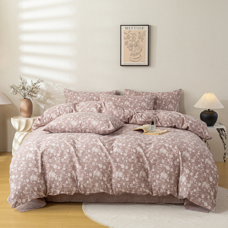 (总)七里香 2025秋冬新品A类加厚高克重原麻复古风亚麻皱皱纱印花四件套,布袋装组合图,粉黛,花蕾-咖,花蕾-绿,金枝玉叶,锦簇,盛夏,素锦,向阳花开,一抹香,绽放