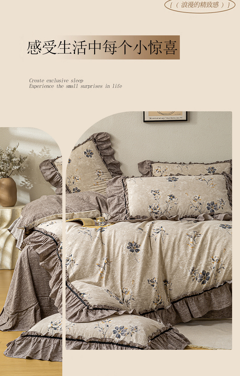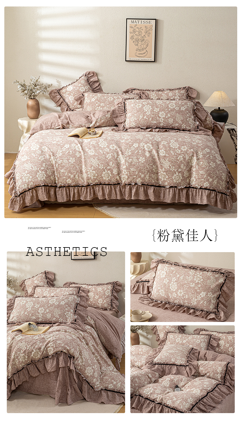 大麦家纺 2025新款水洗亚麻花边四件套 山花浪漫