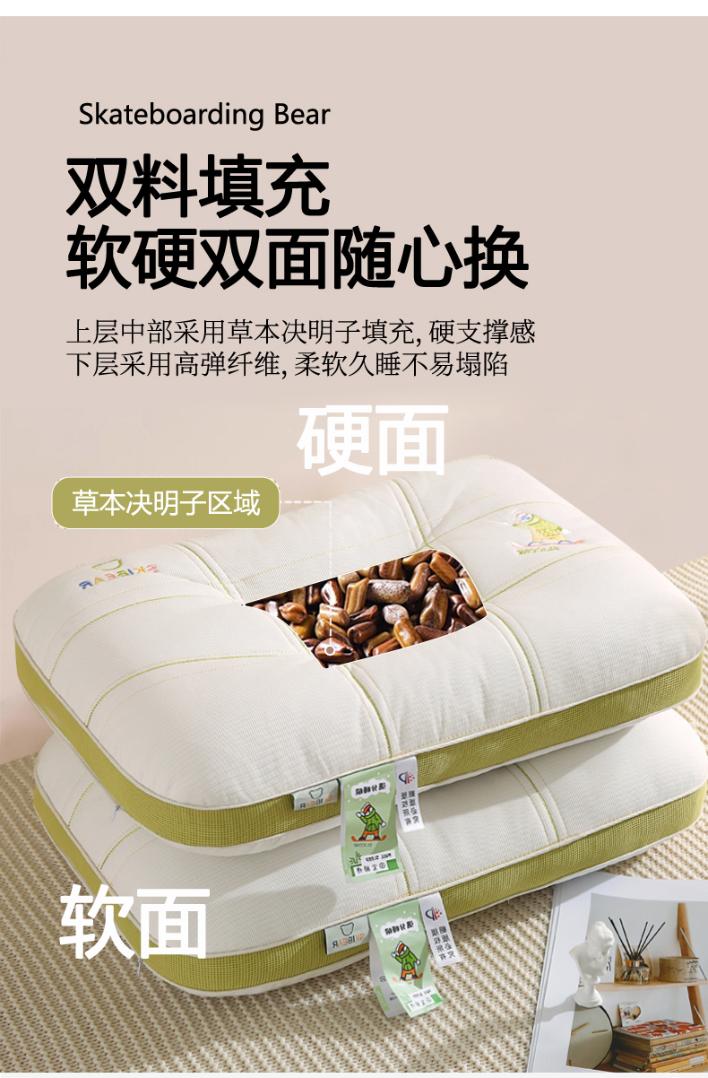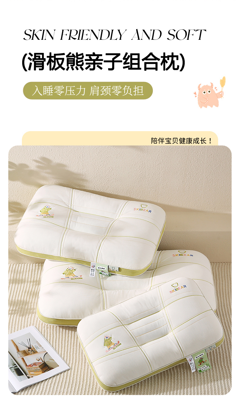 商品名称:(总)金牛枕芯 2025新款滑板熊亲子枕决明子枕头乳胶夹层儿童枕成人枕头枕芯