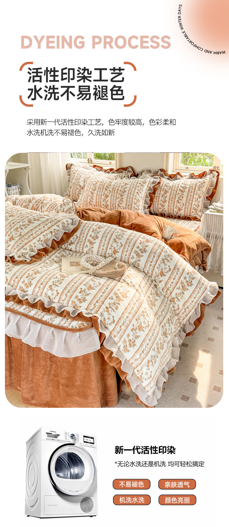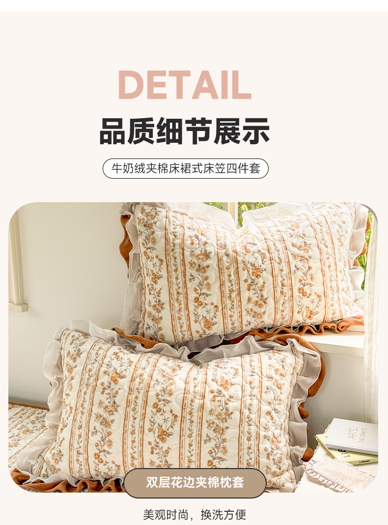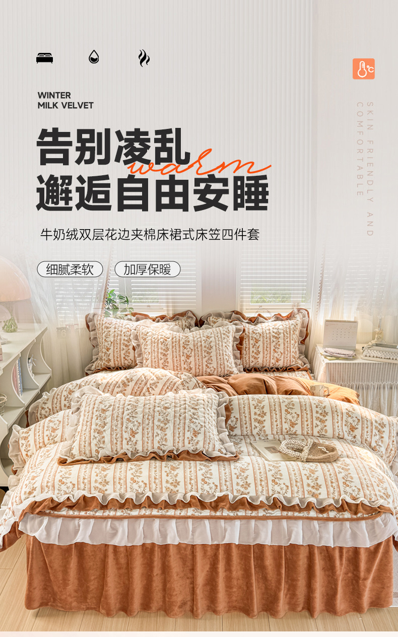 商品名称:禧缘家纺(原梦想家) 2025新款夹棉双层花边床笠牛奶绒系列四件套 落日云舒