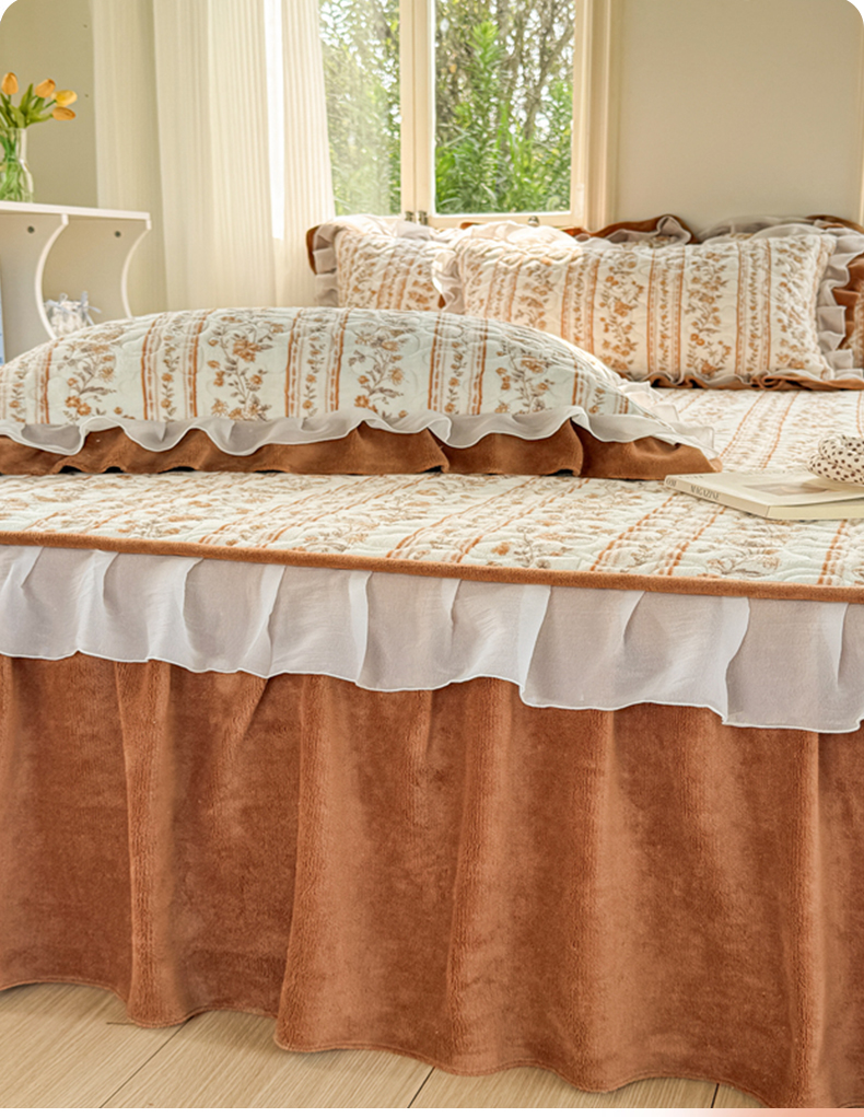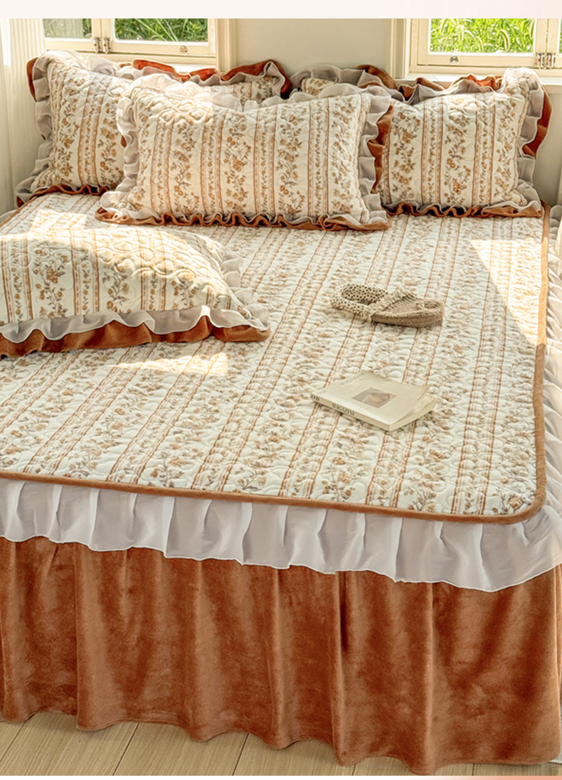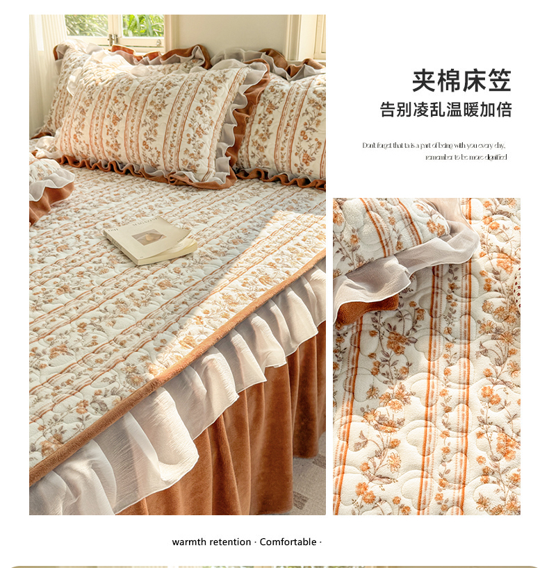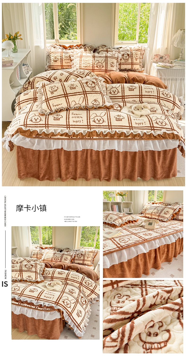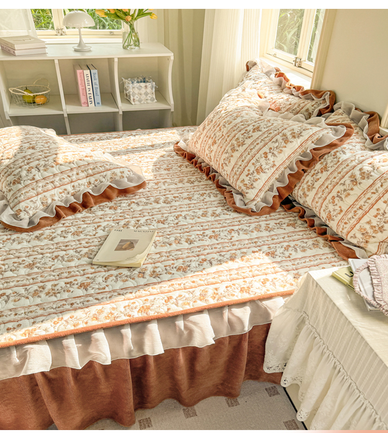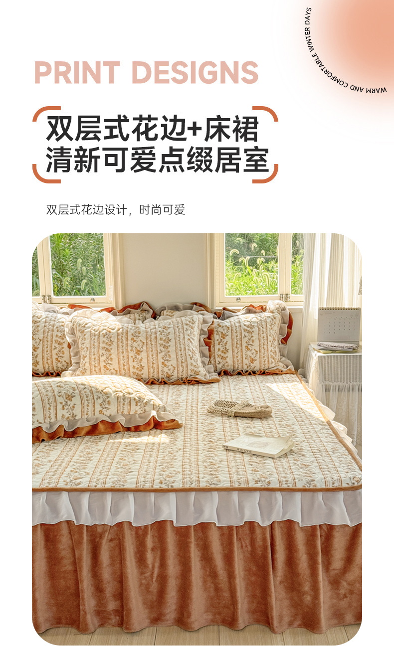 (总)禧缘家纺(原梦想家) 2025新款夹棉双层花边牛奶绒床笠三件套系列,布布乐园,步步生花,杏花微雨,雾都茶花,摩卡小镇,猫咪心事,浪漫花开,蓝铃风语,狗狗岛屿,落日云舒
