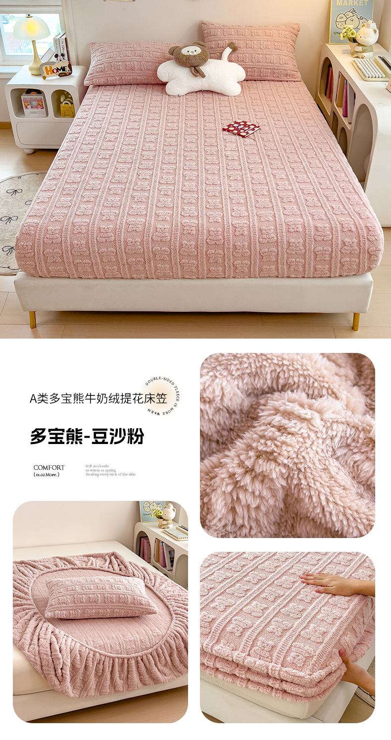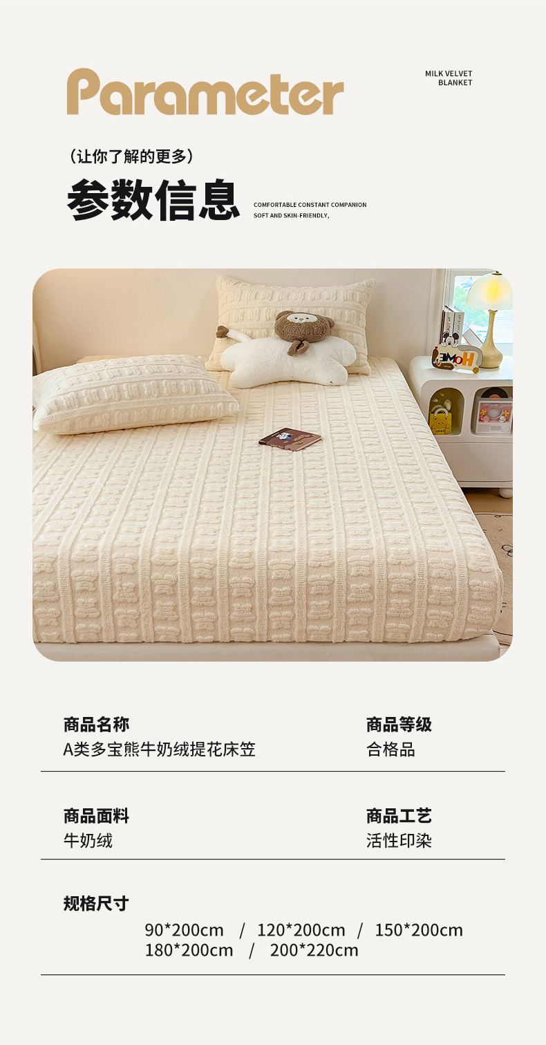 世纪绒品 2025新款A类牛奶绒提花床笠-多宝熊 多宝熊-月牙白
