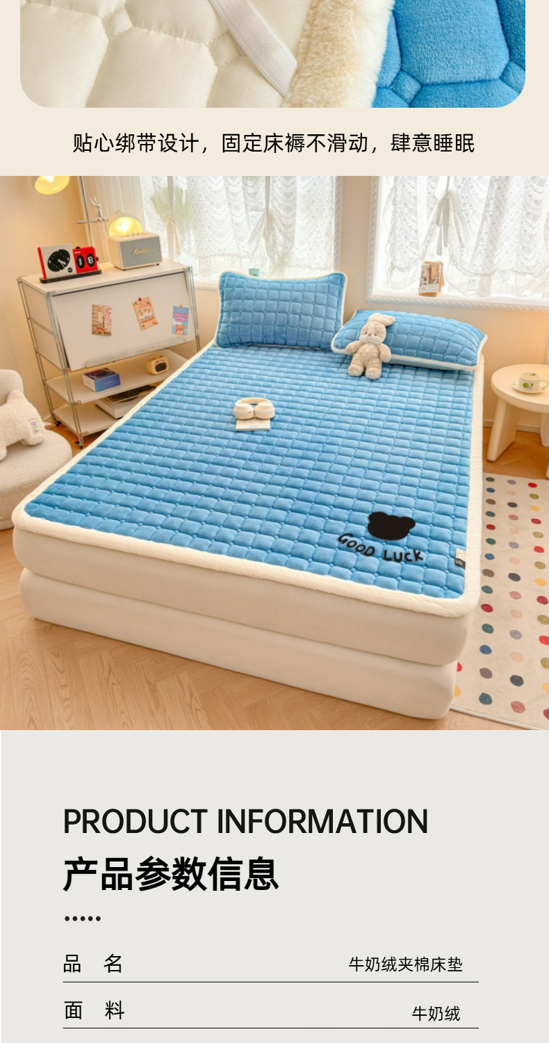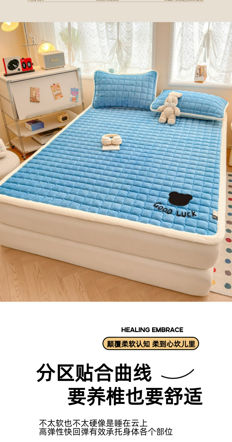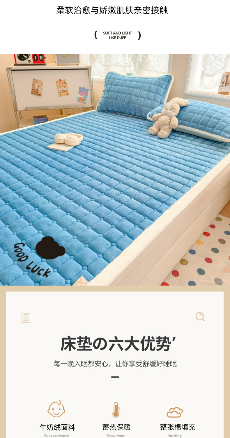 当前位置: 91家纺网 > 商品网购 > 床垫/床褥 > 普通床垫 > 爱屋及屋 2025新款牛奶绒纯色床护垫-好运熊大床系列 海蓝