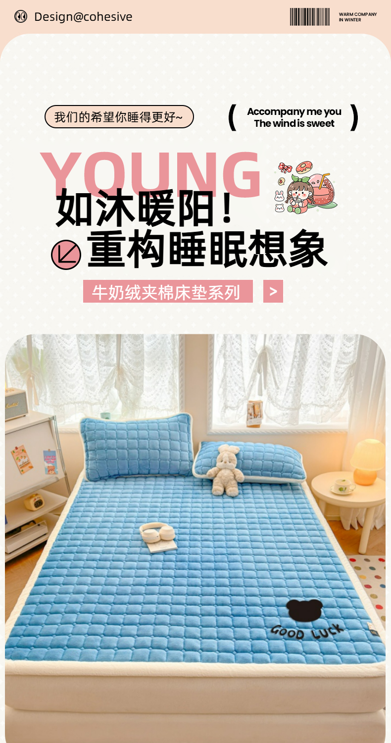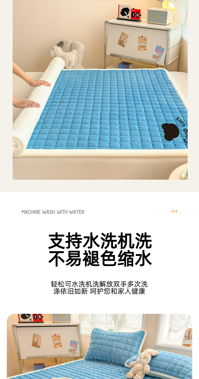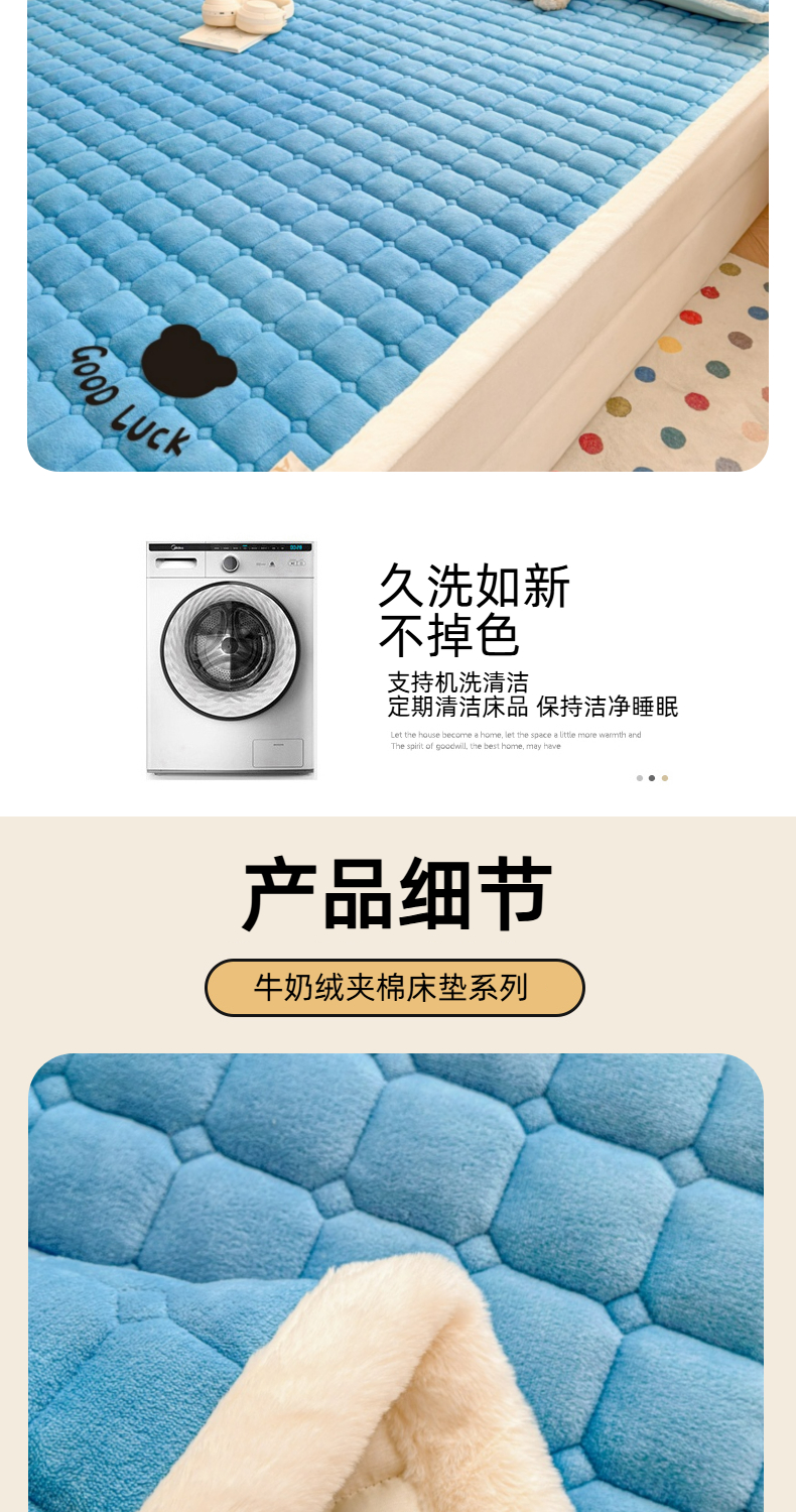 当前位置: 91家纺网 > 商品网购 > 床垫/床褥 > 普通床垫 > 爱屋及屋 2025新款牛奶绒纯色床护垫-好运熊大床系列 海蓝