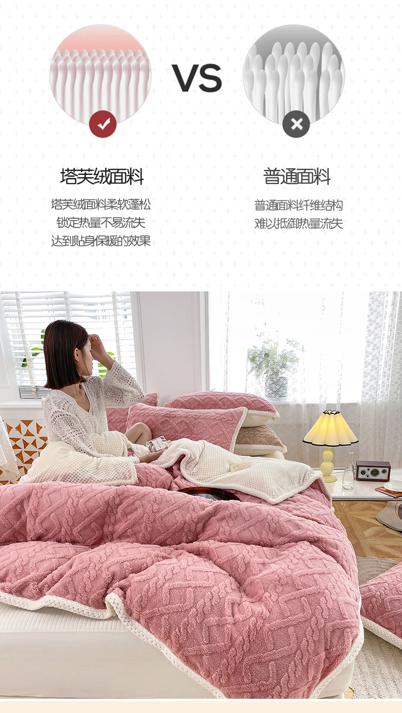 商品名称:雅诗帛 冬季加绒四件套云朵绒法莱绒牛奶绒雕花绒水晶绒塔芙绒毛毯学生宿舍保暖加绒加厚珊瑚绒双面绒 雾兰