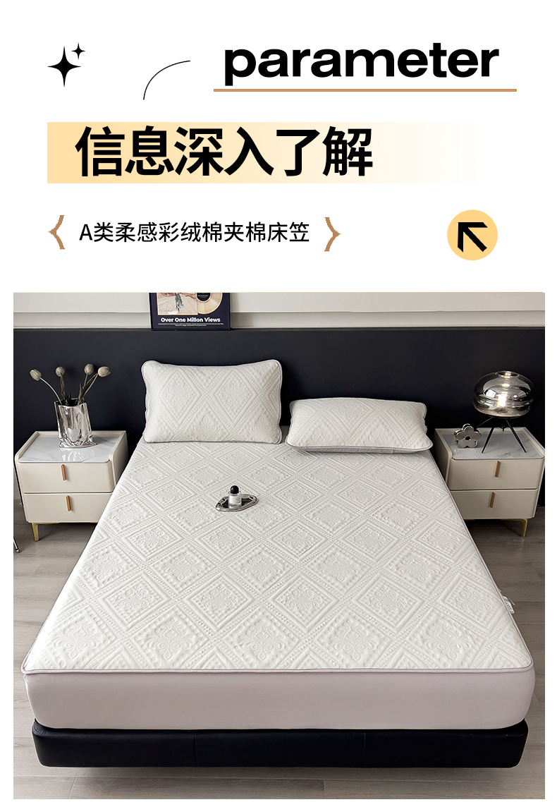 • 91家纺网 家纺一手货源 找家纺 雅诗帛 2025新款A类柔感彩绒棉夹棉床笠-菱影蔓花 菱影蔓花-珠光白