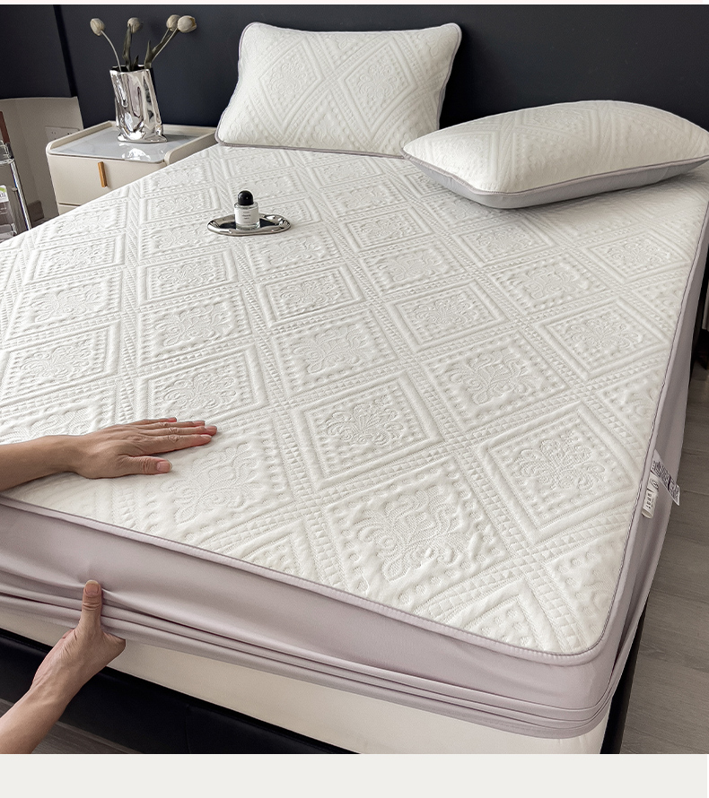 雅诗帛 2025新款A类柔感彩绒棉夹棉床笠-菱影蔓花 菱影蔓花-珠光白