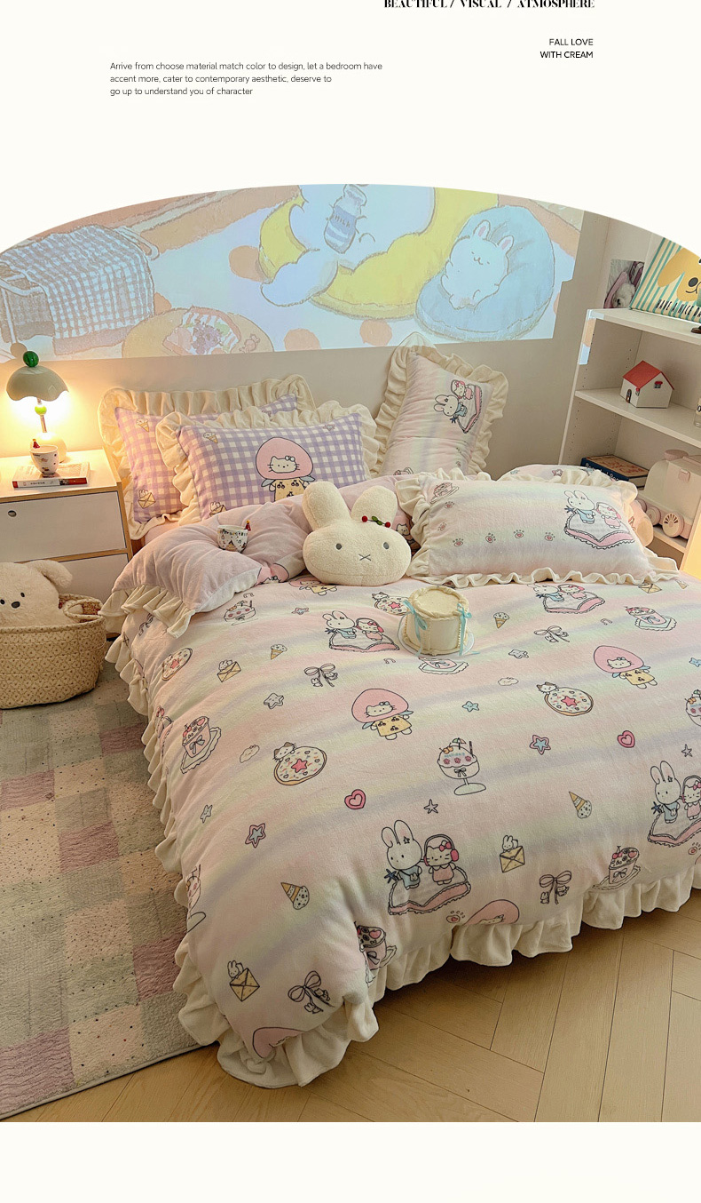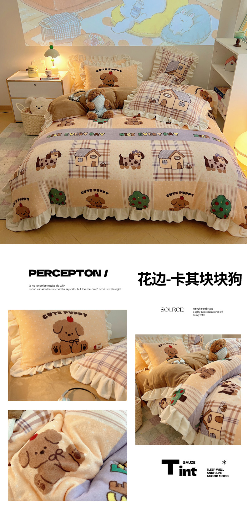 当前位置: 91家纺网 > 商品网购 > 床品套件 > 四件套 > 牛奶绒四件套 > 沐慕 2025新款高克重花边款牛奶绒四件套 花边-哈宁小狗