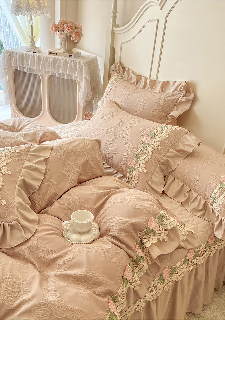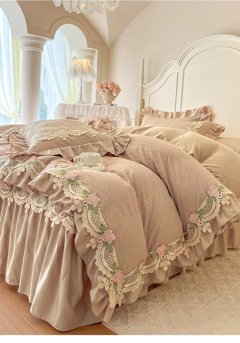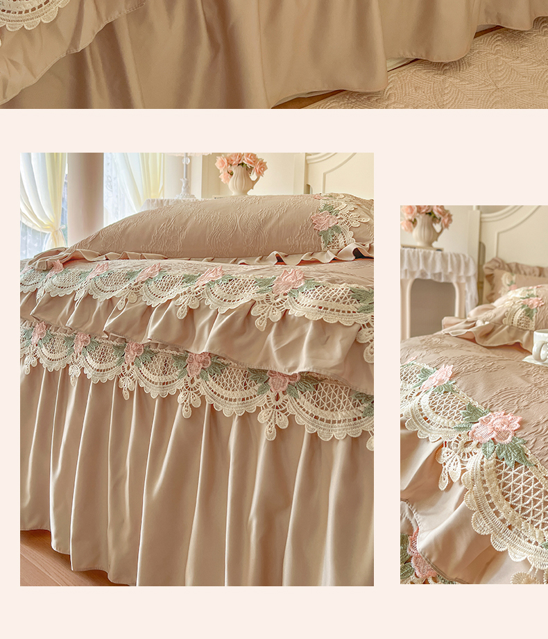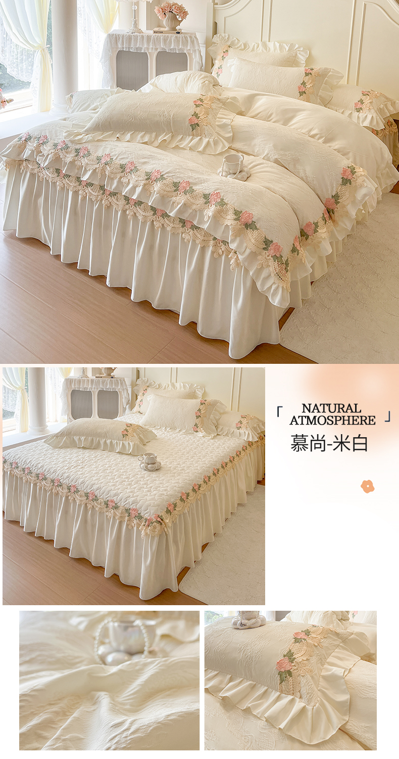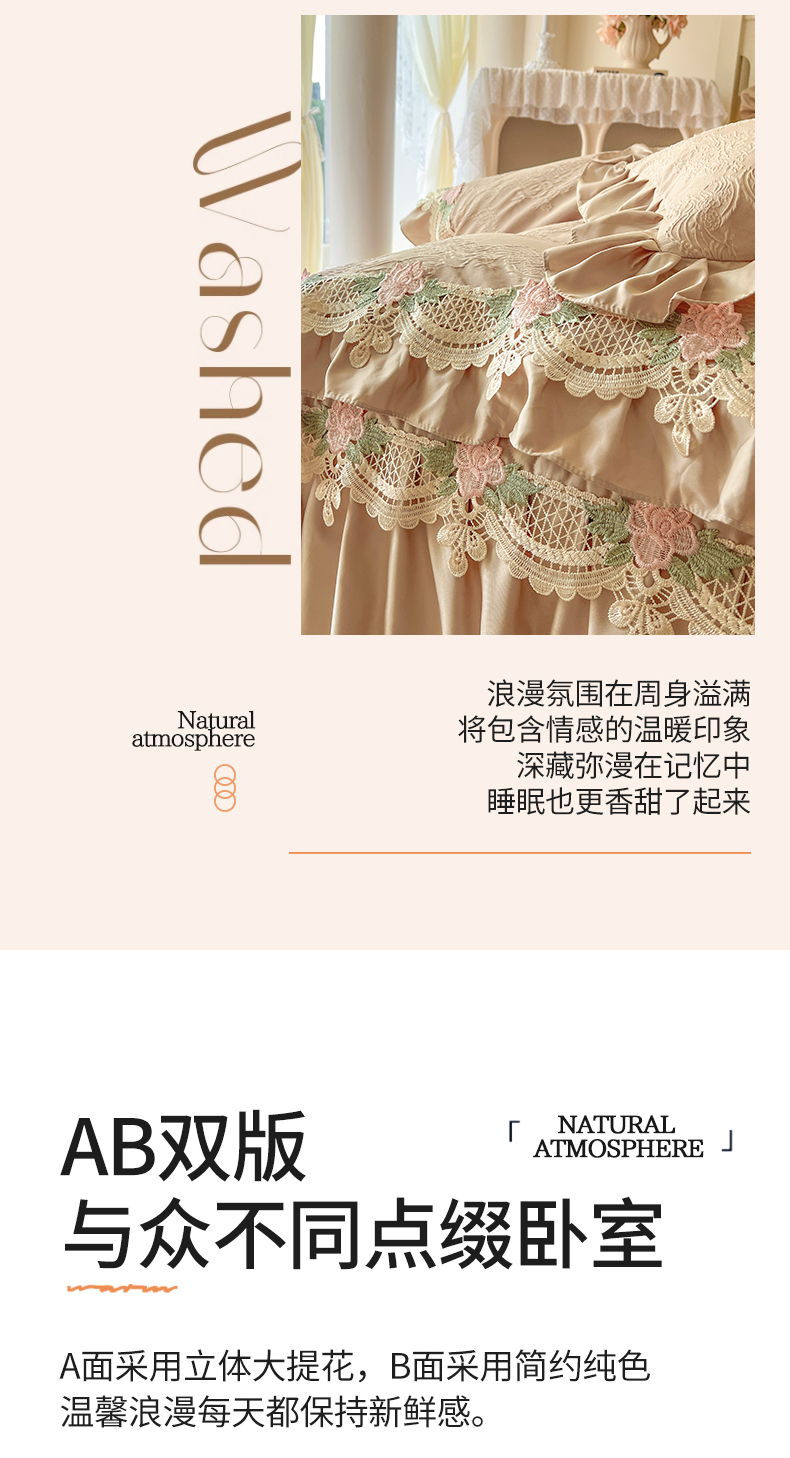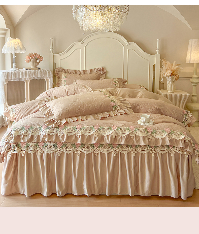 当前位置: 91家纺网 > 商品网购 > 床品套件 > 四件套 > 其它四件套 > 网红馆(ck家纺) 2025新款水洗真丝蕾丝刺绣床裙四件套-慕尚 香槟