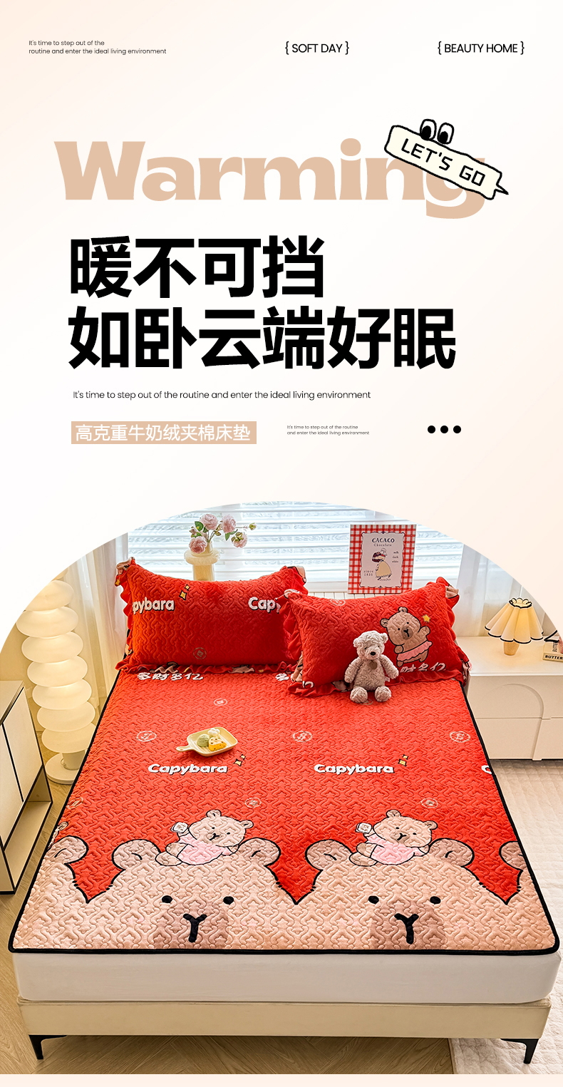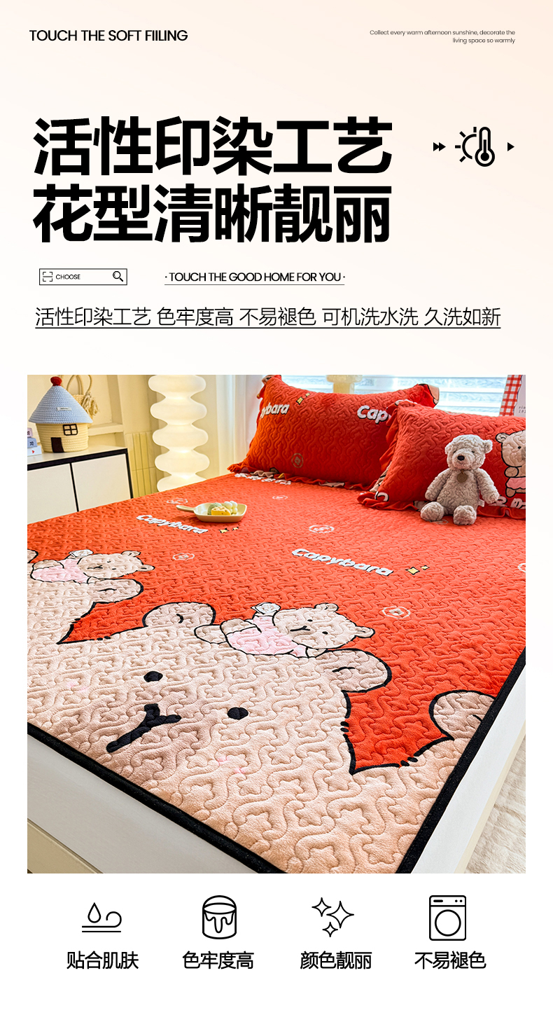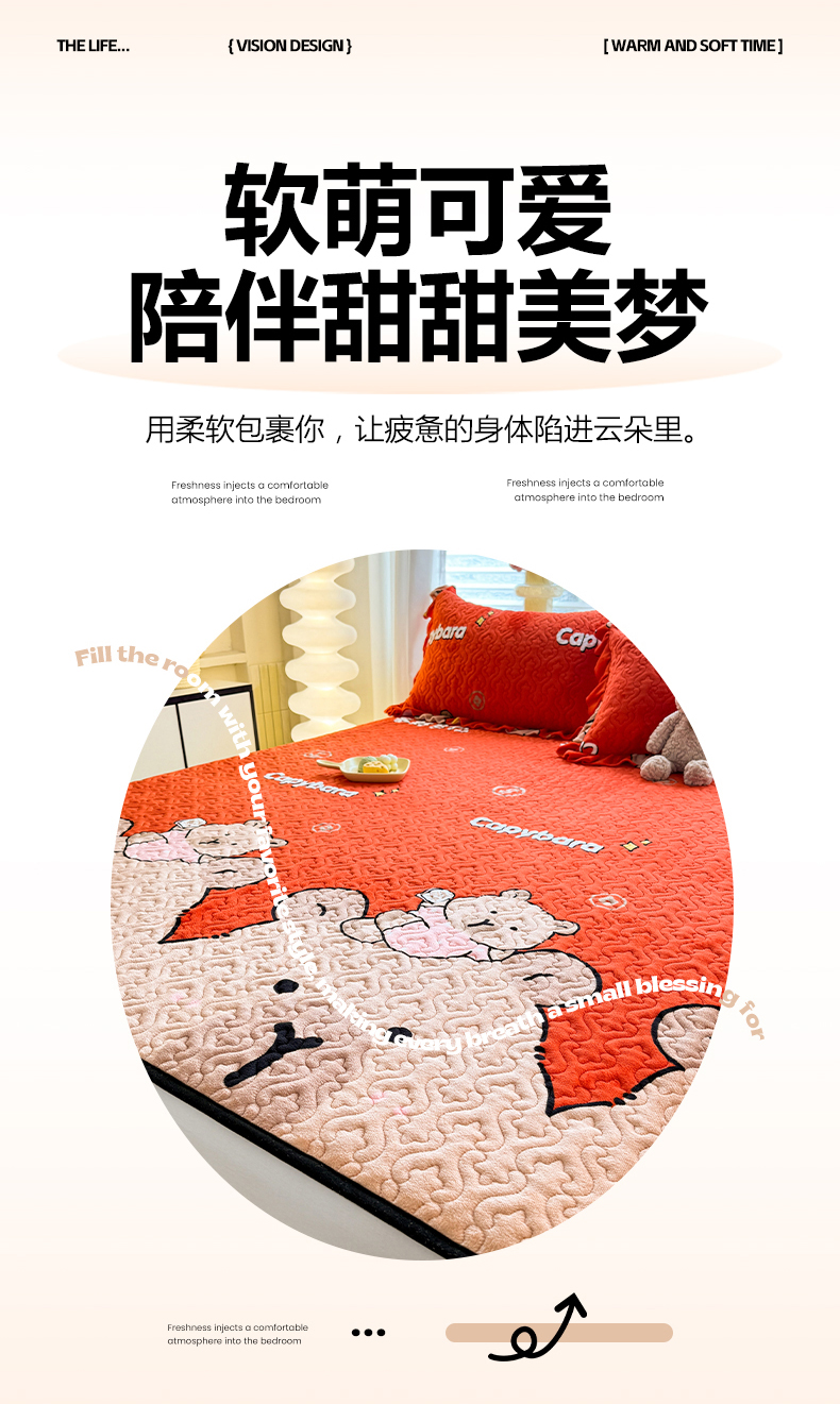 (总)美达家纺 2025新款高克重牛奶绒夹棉床垫,巴拉巴拉,格子萌熊,恐龙星球,梦蝶,时来运转,甜蜜奶吧,微笑熊,针织熊