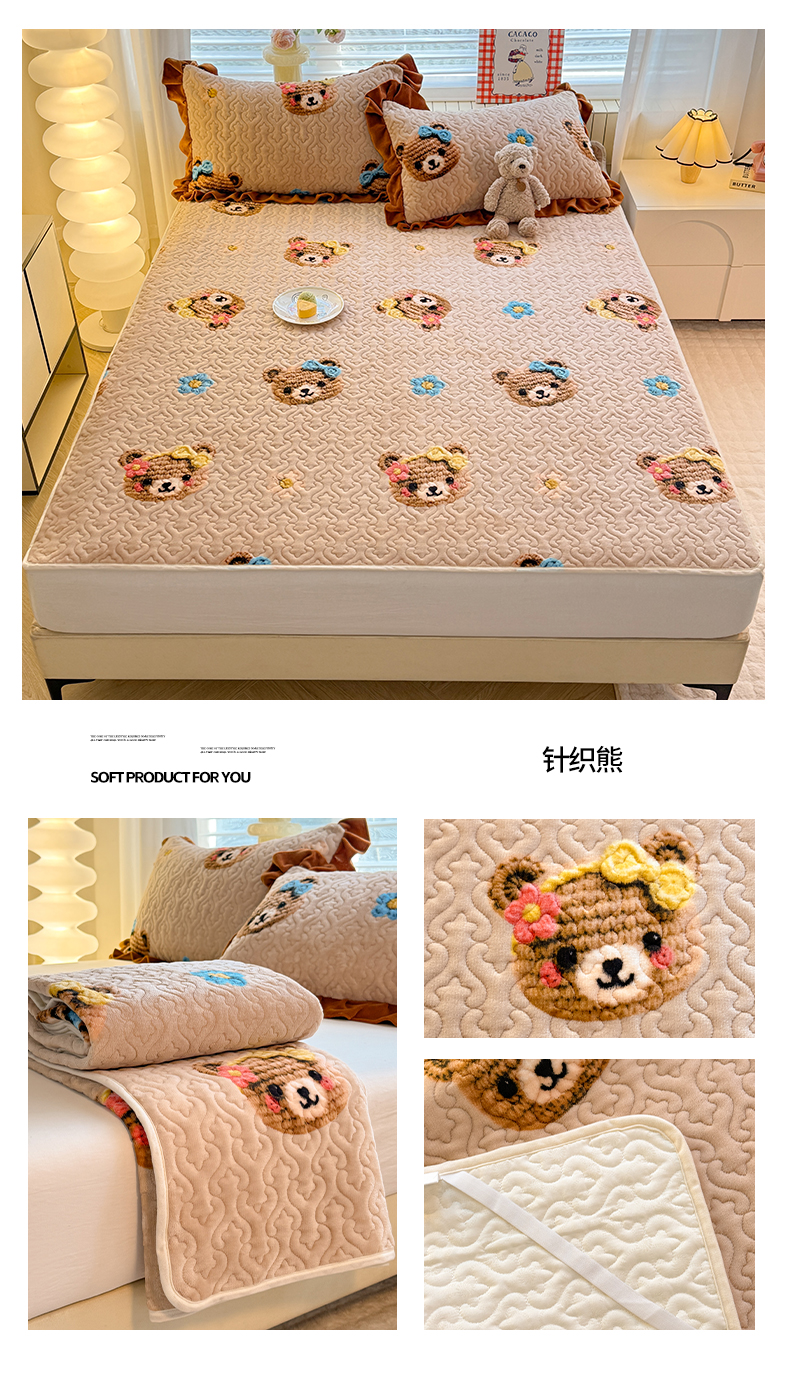 (总)美达家纺 2025新款高克重牛奶绒花边款夹棉床盖三件套,巴拉巴拉,格子萌熊,恐龙星球,梦蝶,时来运转,甜蜜奶吧,微笑熊,针织熊