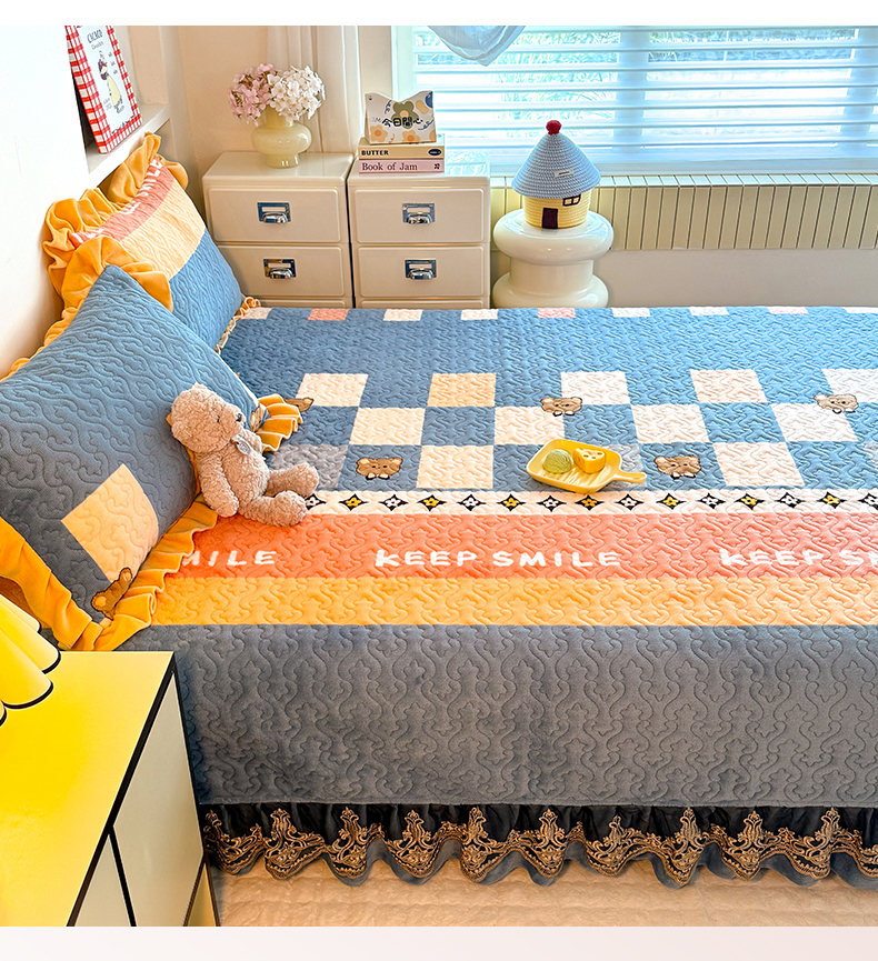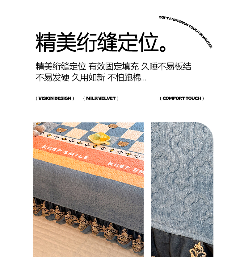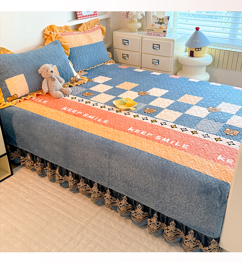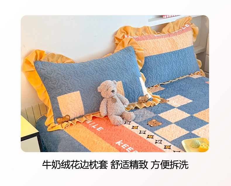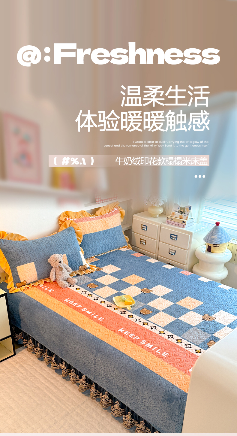 (总)美达家纺 2025新款高克重牛奶绒花边款夹棉床盖三件套,巴拉巴拉,格子萌熊,恐龙星球,梦蝶,时来运转,甜蜜奶吧,微笑熊,针织熊