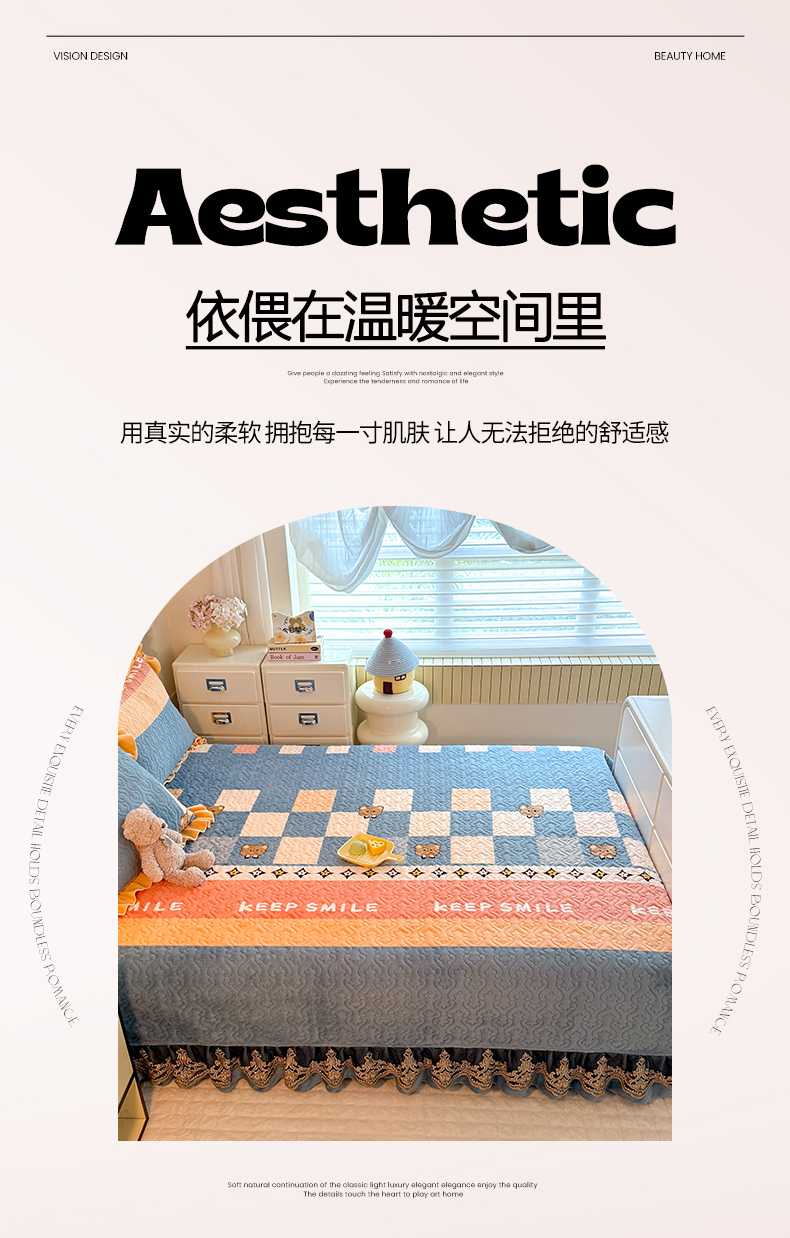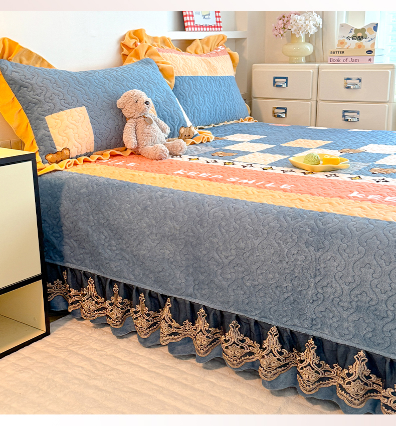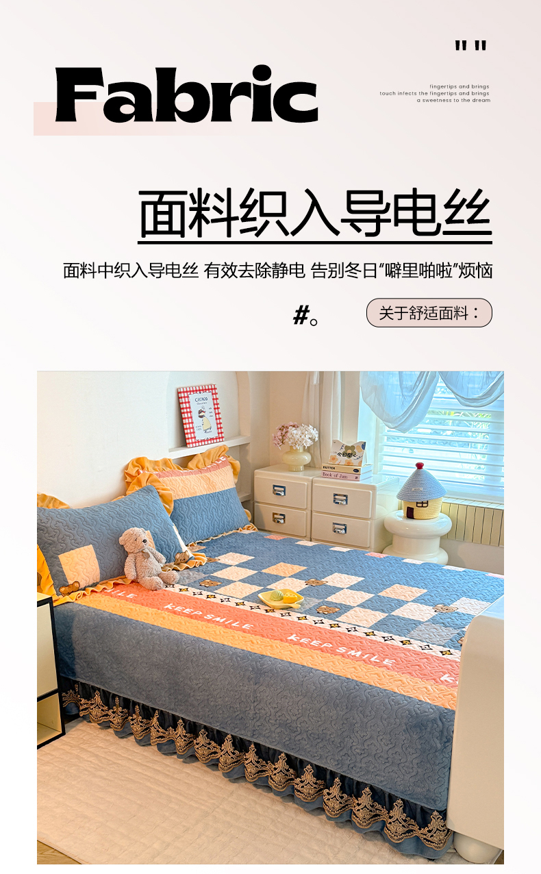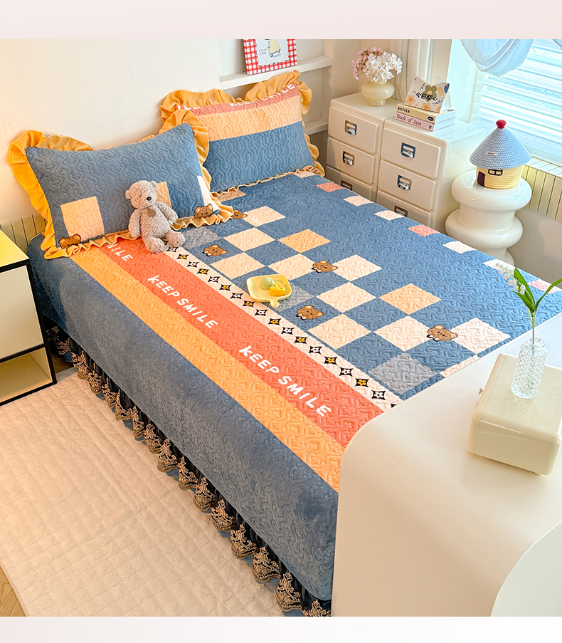 (总)美达家纺 2025新款高克重牛奶绒花边款夹棉床盖三件套,巴拉巴拉,格子萌熊,恐龙星球,梦蝶,时来运转,甜蜜奶吧,微笑熊,针织熊