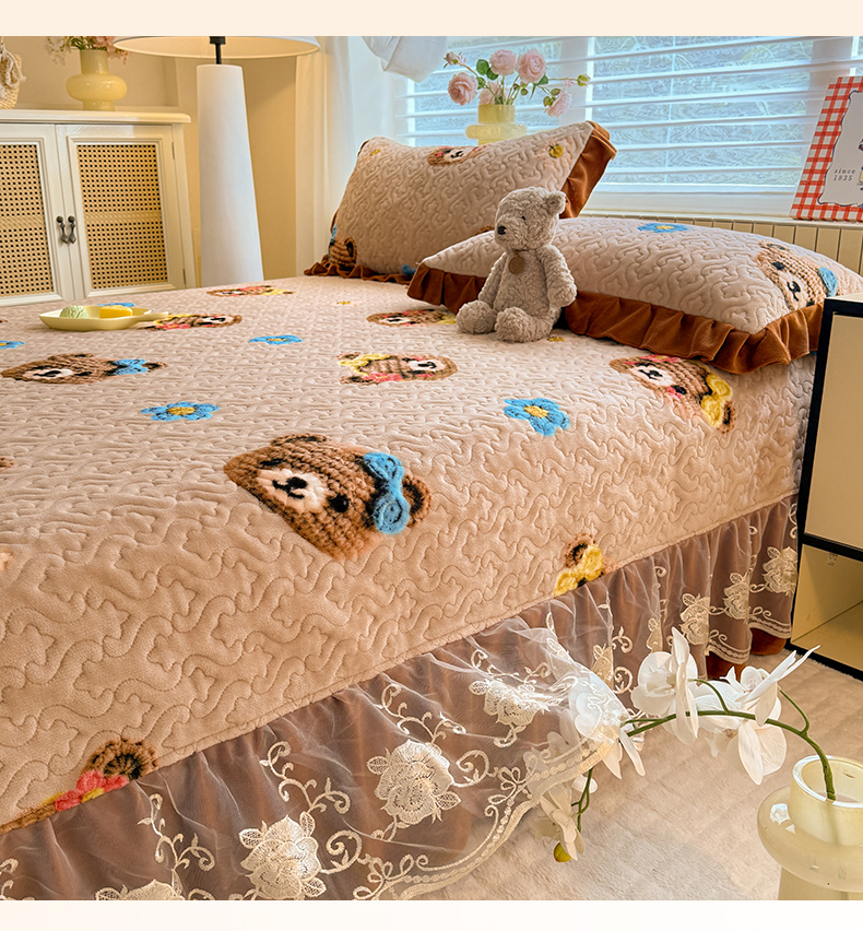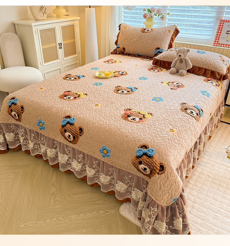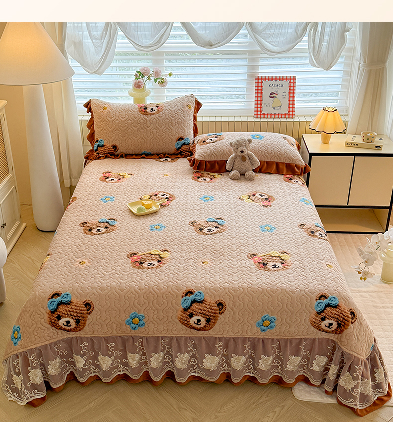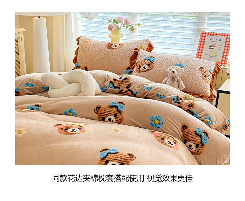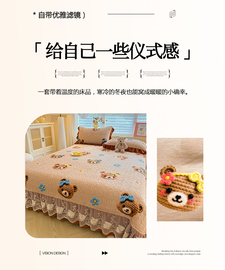 美达家纺 2025新款卡通牛奶绒印花床盖四件套 针织熊